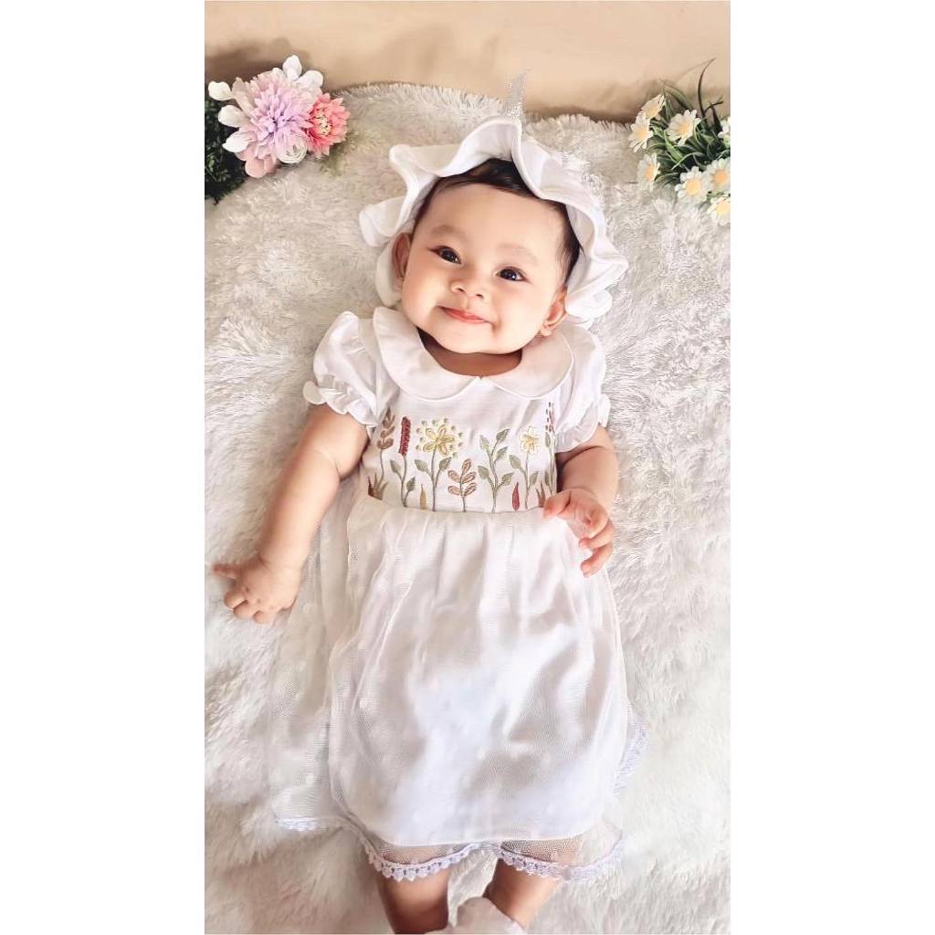 Dress anak rok Gamis Muslim bayi Cewek Perempuan silucubabyshop sweet love bunny pure white aqiqah mawar earth tone AQIL