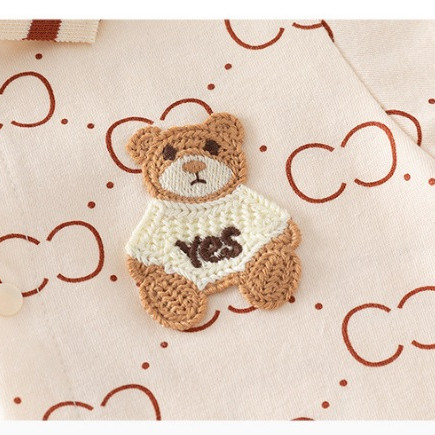 Jumper Bayi Kembar Unisex Lengan Pendek Style Elegan Motif Pita Cream Dan Bordir Bear Premium Baju Polos Anak Usia 3-18
