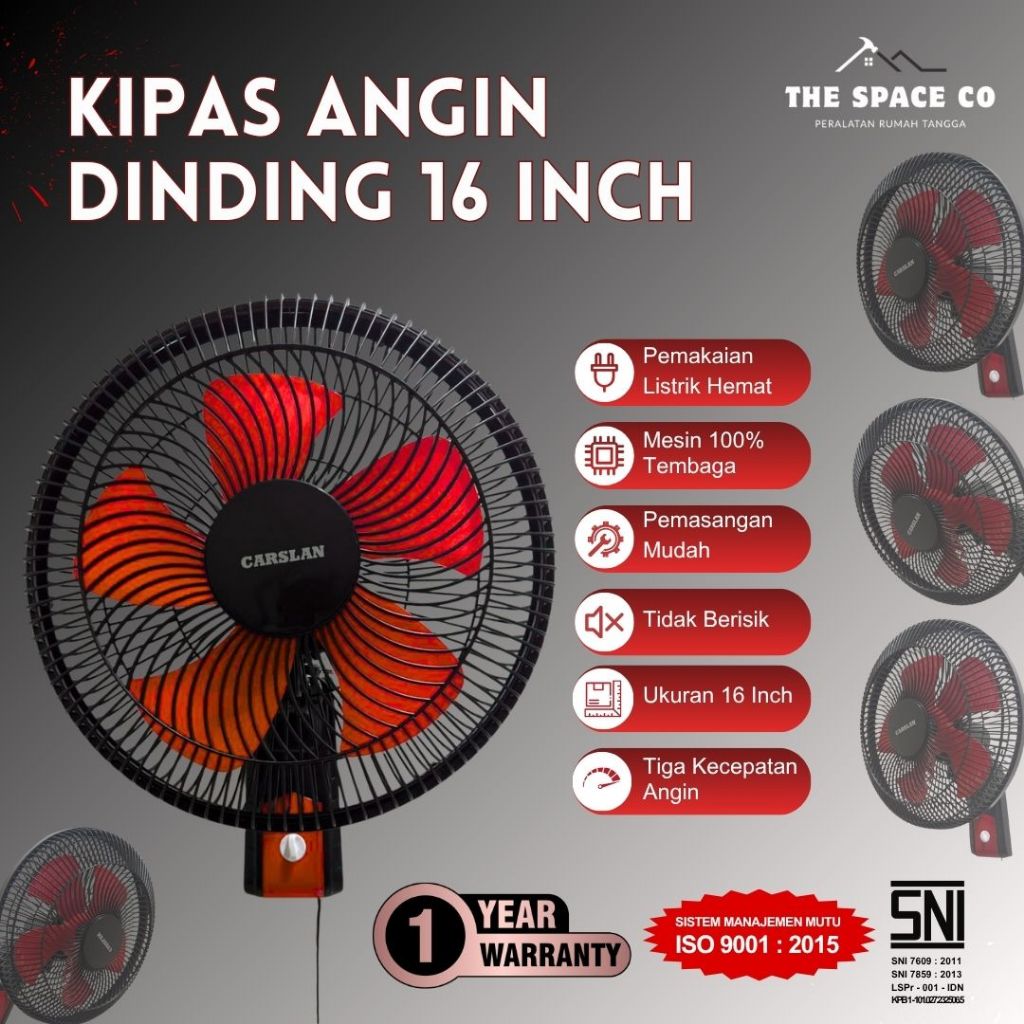 Kipas Angin Dinding Wall Fan 16 Inch 5 Baling Kencang Hemat Daya Bergaransi