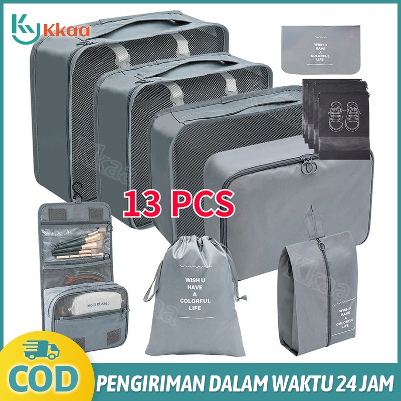 13pcs/Set Tas Travel Organizer Storage Bag /Tas Koper Polos/13 in1 Travel Luggage Organizer Packing / Tas Penyimpanan Tr