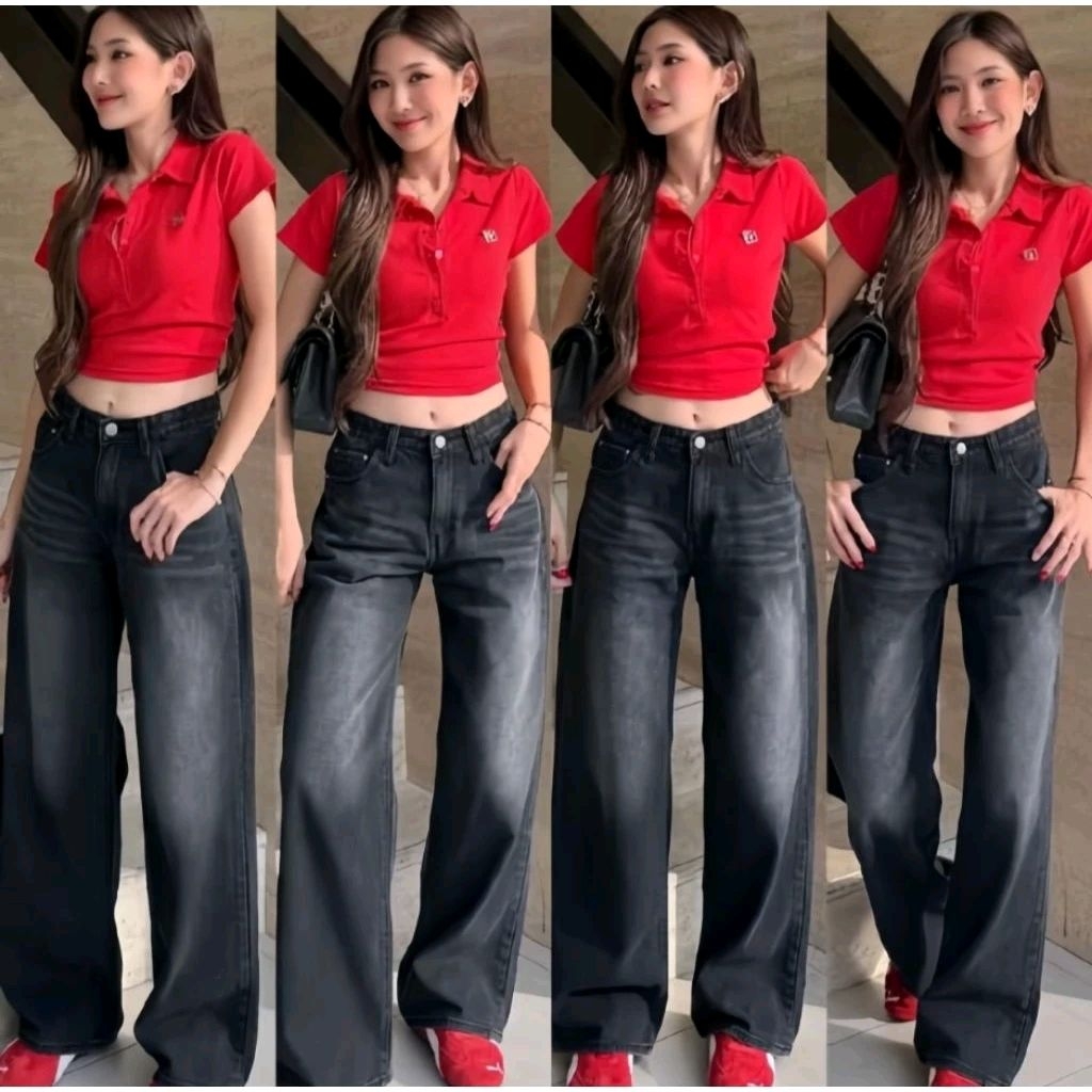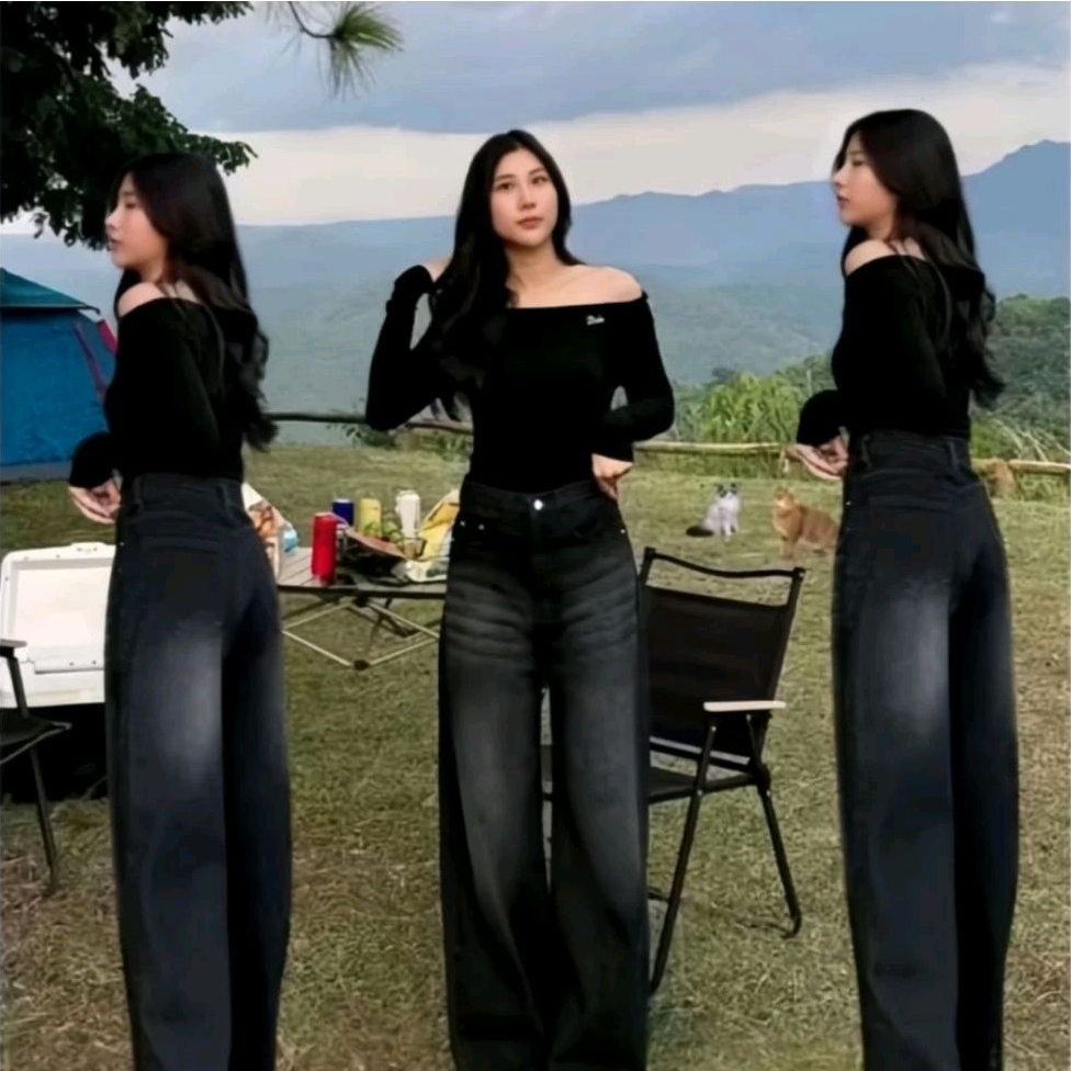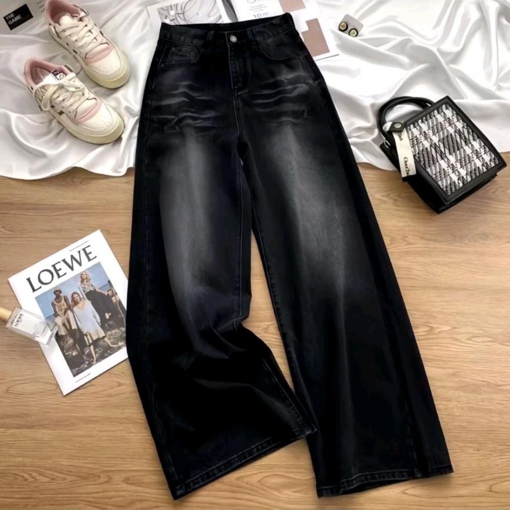 [ UNISEX ] Celana Jeans Whsiker Gombrong Highwaist Baggy Pants Wide Leg Korean Style TERLARIS
