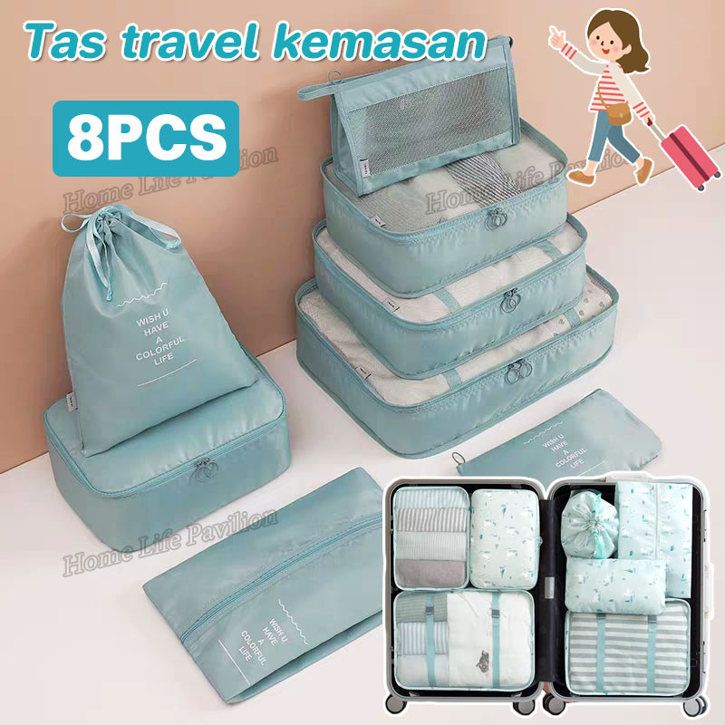 8 in 1 Organizer Bag Tas Travel Kan Travel Packing Bag Kosmetik Pouch Cubes Koper Suitcase Organizer