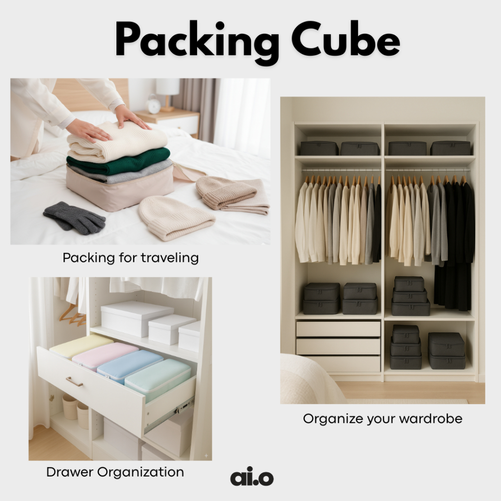 AIO 4 pcs Packing Cube Set Travel Organizer Large Tas Penyimpanan Koper Besar Pouch Premium 4in1
