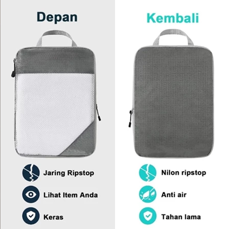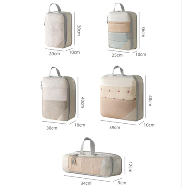 LOOOOPY 5 in 1 Tas Travel Compression Packing Cubes Secret Pouch Set Luggage Organizer Tas Koper Expandable Storage Bag