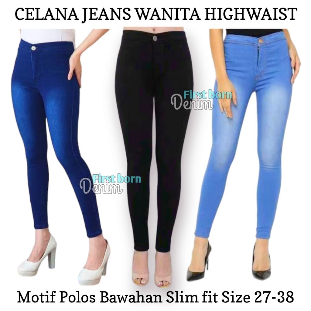 Celana Jeans Wanita Highwaist Polos Cewek