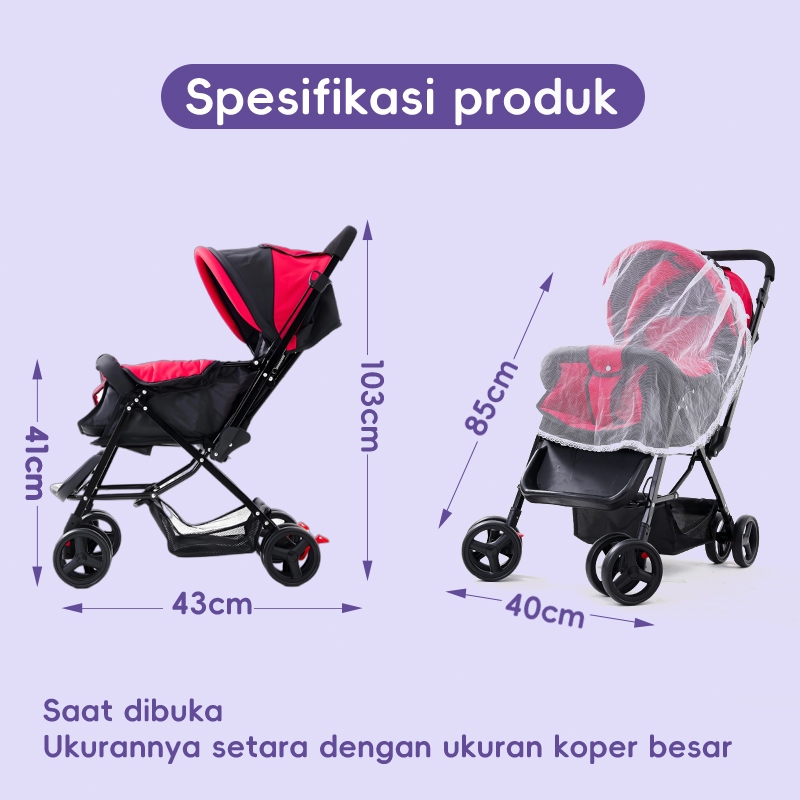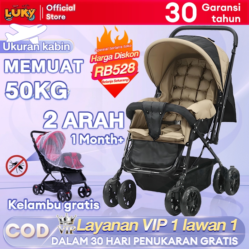 LUKY Stroller Bayi Bisa dibawa di pesawat Dua Arah Kursi lipat travelling Adjustable 0-6 tahun