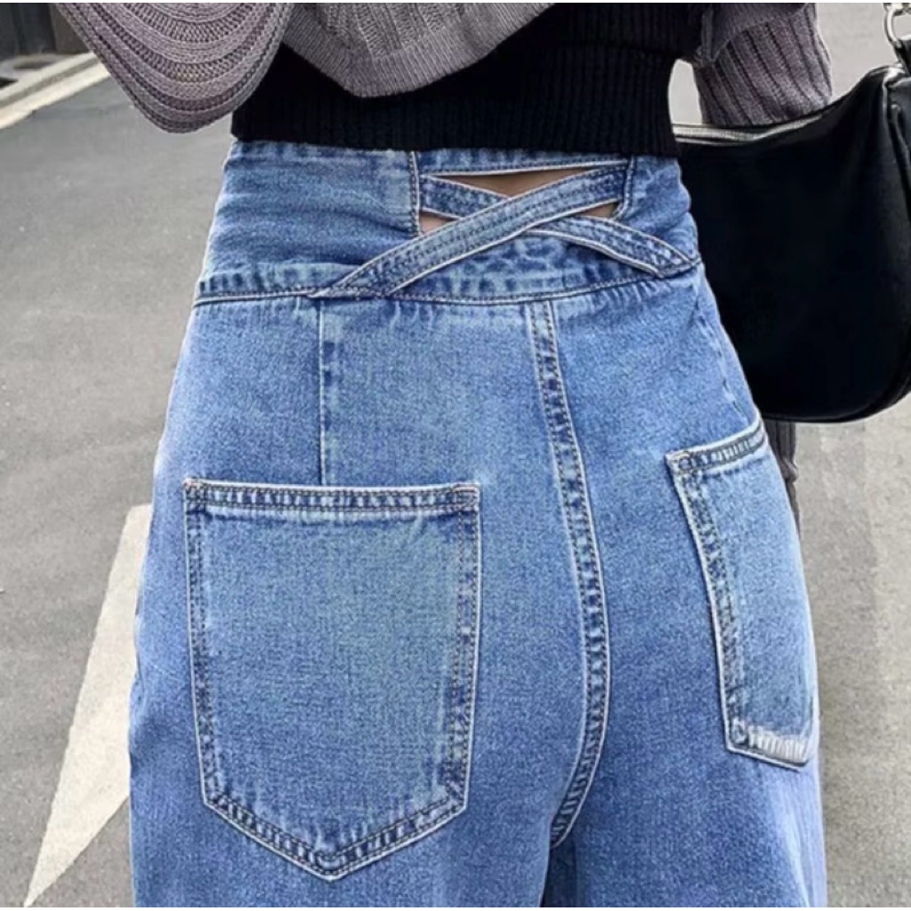 SaqillaJeans - Celana Kulot Jeans Highwaist Wanita J23 Model Silang Belakang Kulot Loose Korea Style