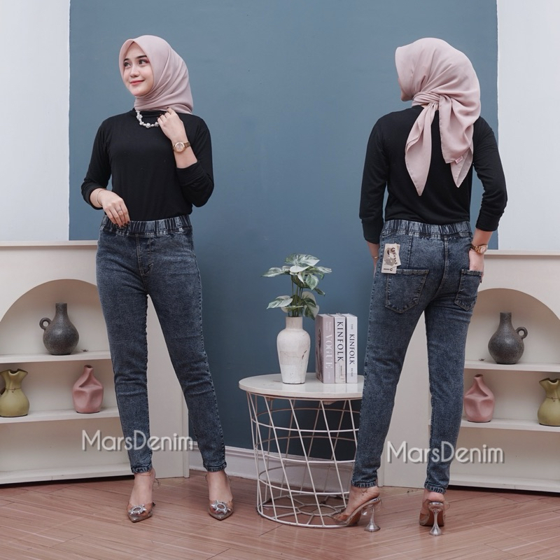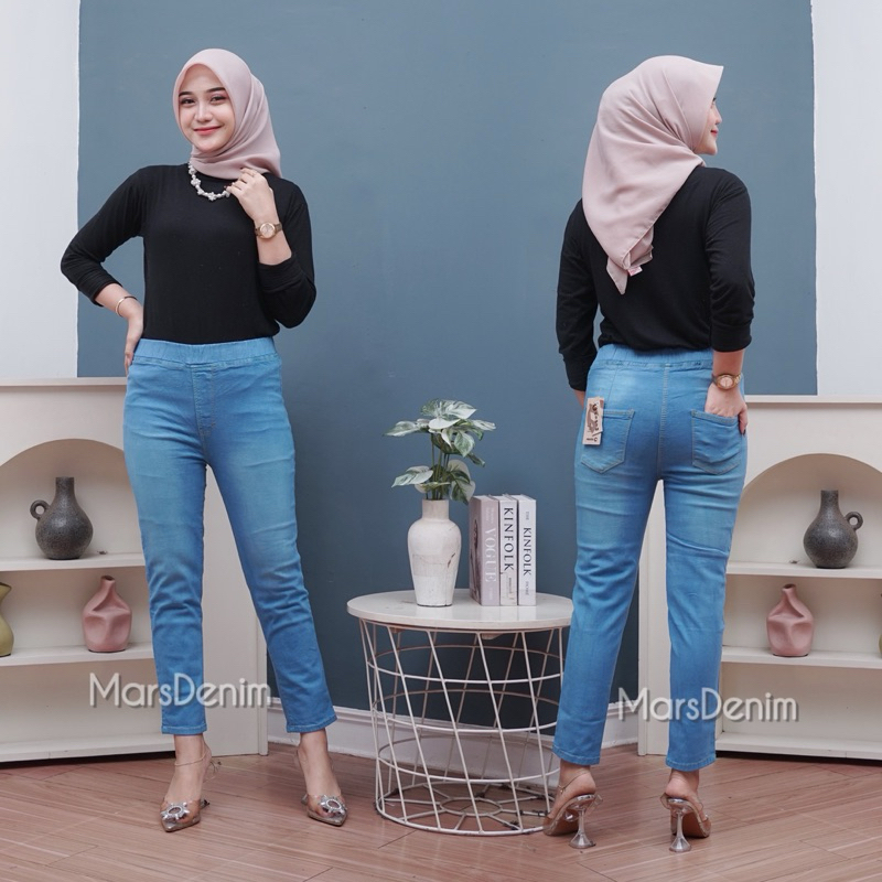 CELANA JEANS LEGGING PINGGANG KARET HIGHWAIST STRETCH JUMBO WANITA