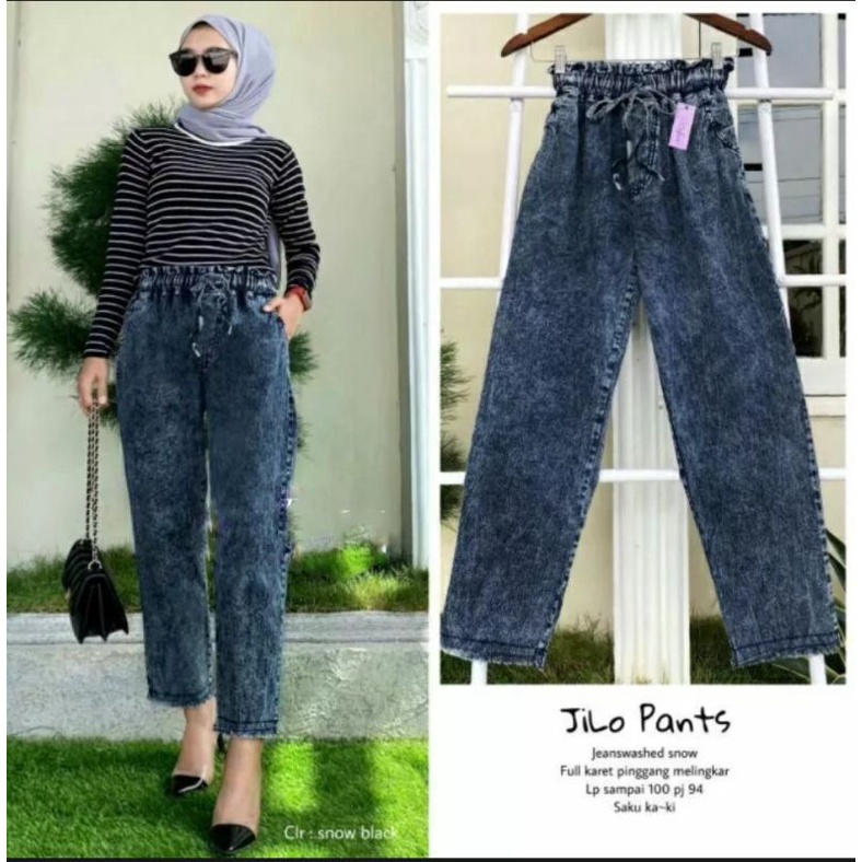 (TRENDING) CELANA BAGGY JEANS SNOW RAWIS BOYFRIEND MASUK BB 45-75 KG // BISA //HIGH QUALITY/PREMIUM/TEBAL
