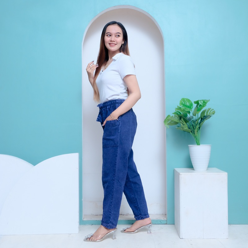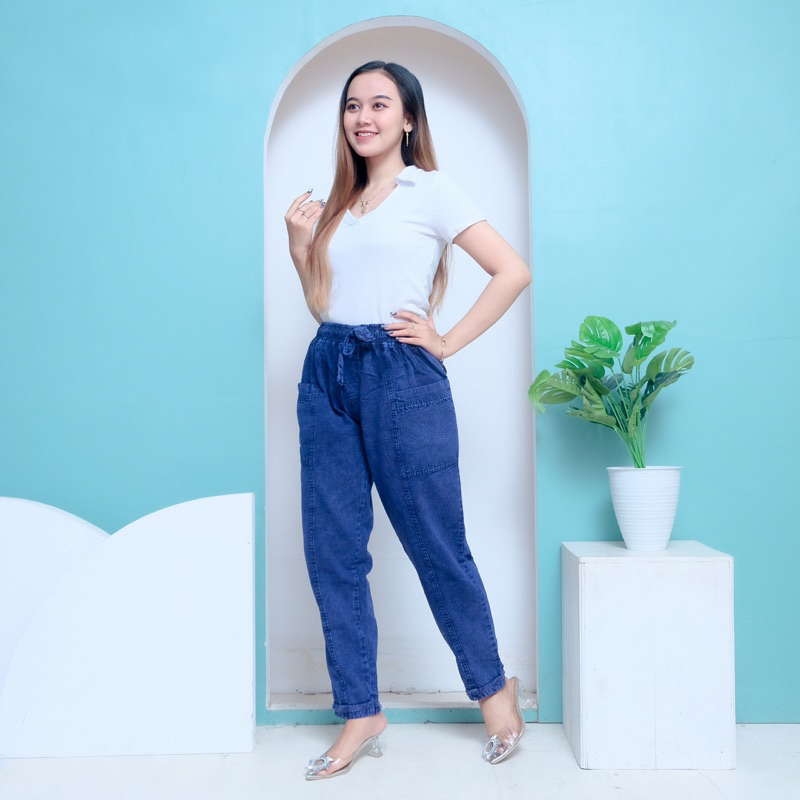 ALESHA - Celana Jeans Wanita Baggy Terbaru, Celana Jeans Tulang Saku Depan Muat BB 50-90 KG
