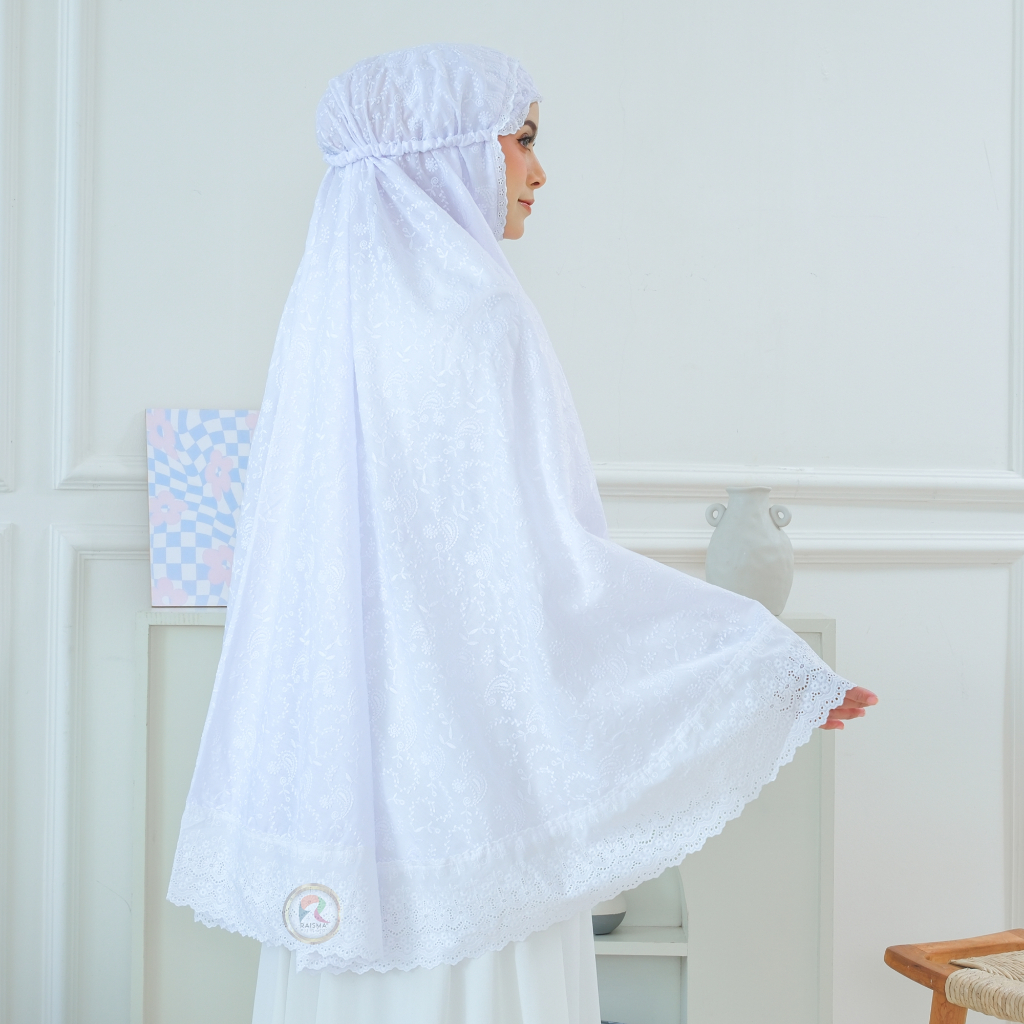 Raisma - Bergo Putih Bahan Katun Jepang Motif Bordir Cantik Dan Adem 002 Perlengkapan Umroh Wanita