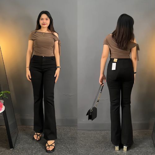 Celana Highwaist Cutbray Jeans Hitam Melar Stret-SELIMIYE JEANS