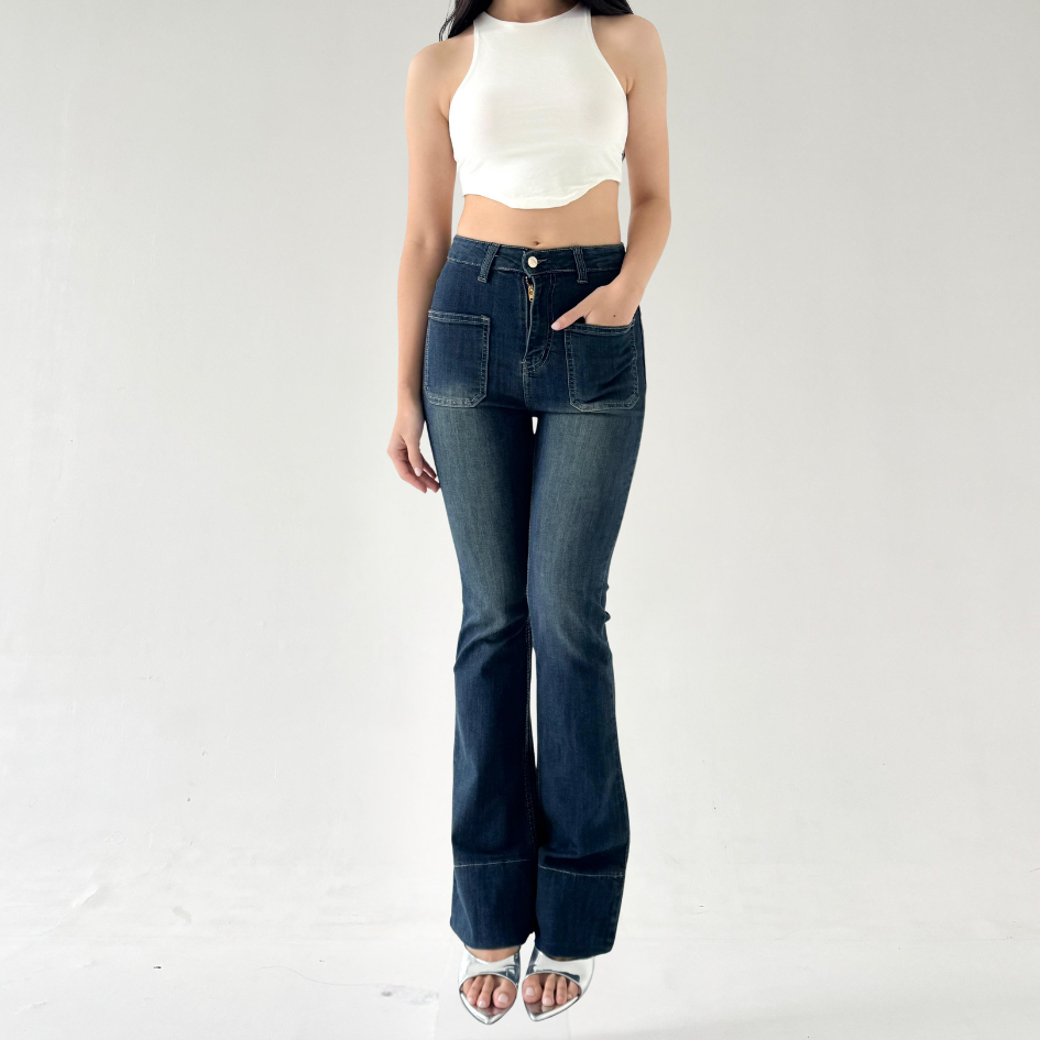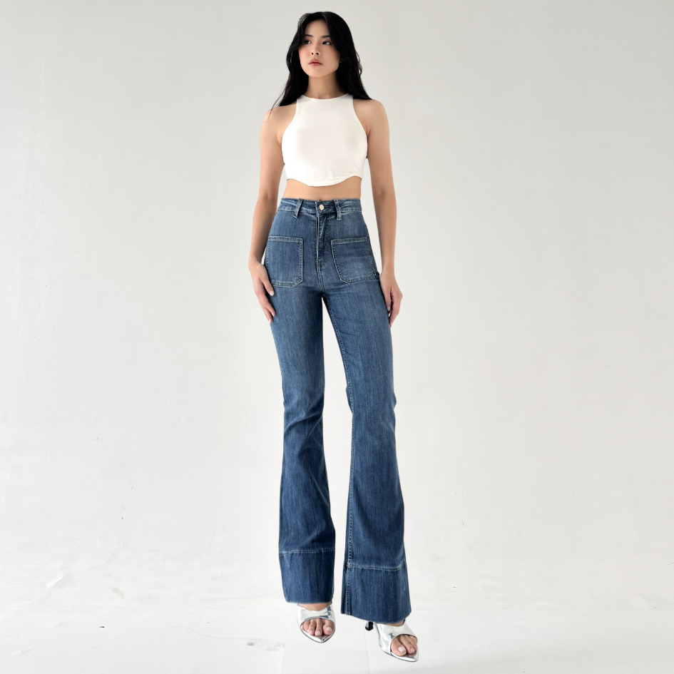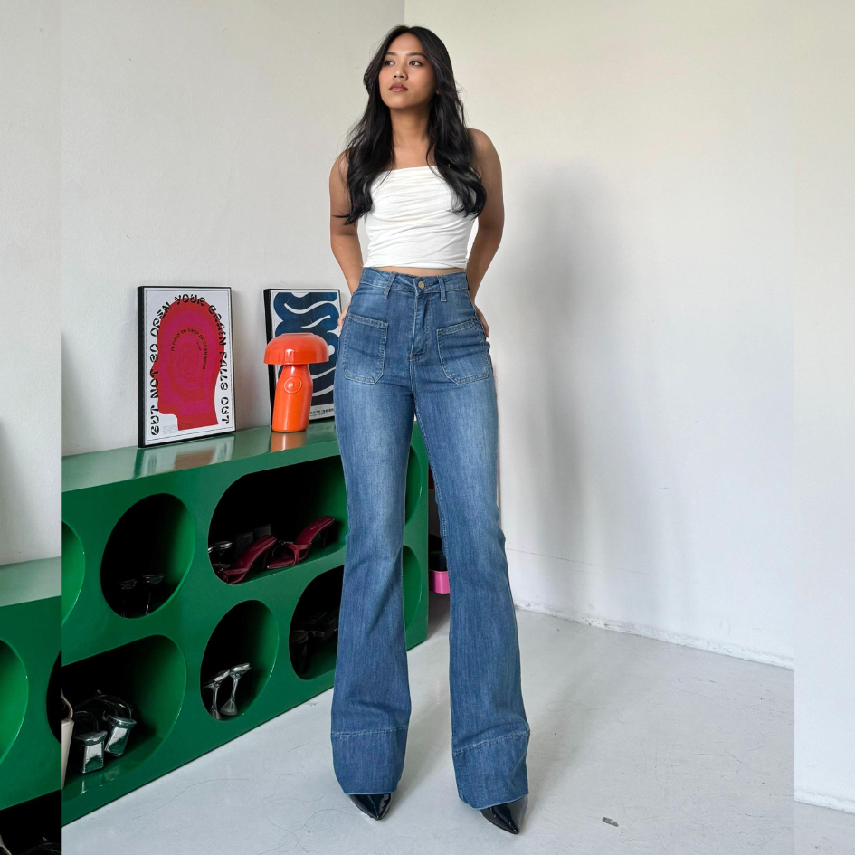 LADOUCE - Kelly High Waist Cutbray Jeans Celana Stretch Flare Panjang Wanita