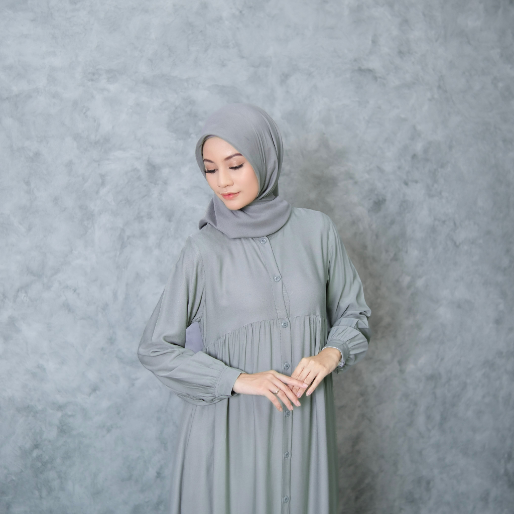 Gamis Full Kancing Rayon Twill Gamis Polos Premium Muslim Wanita Gamis Lengan Kancing