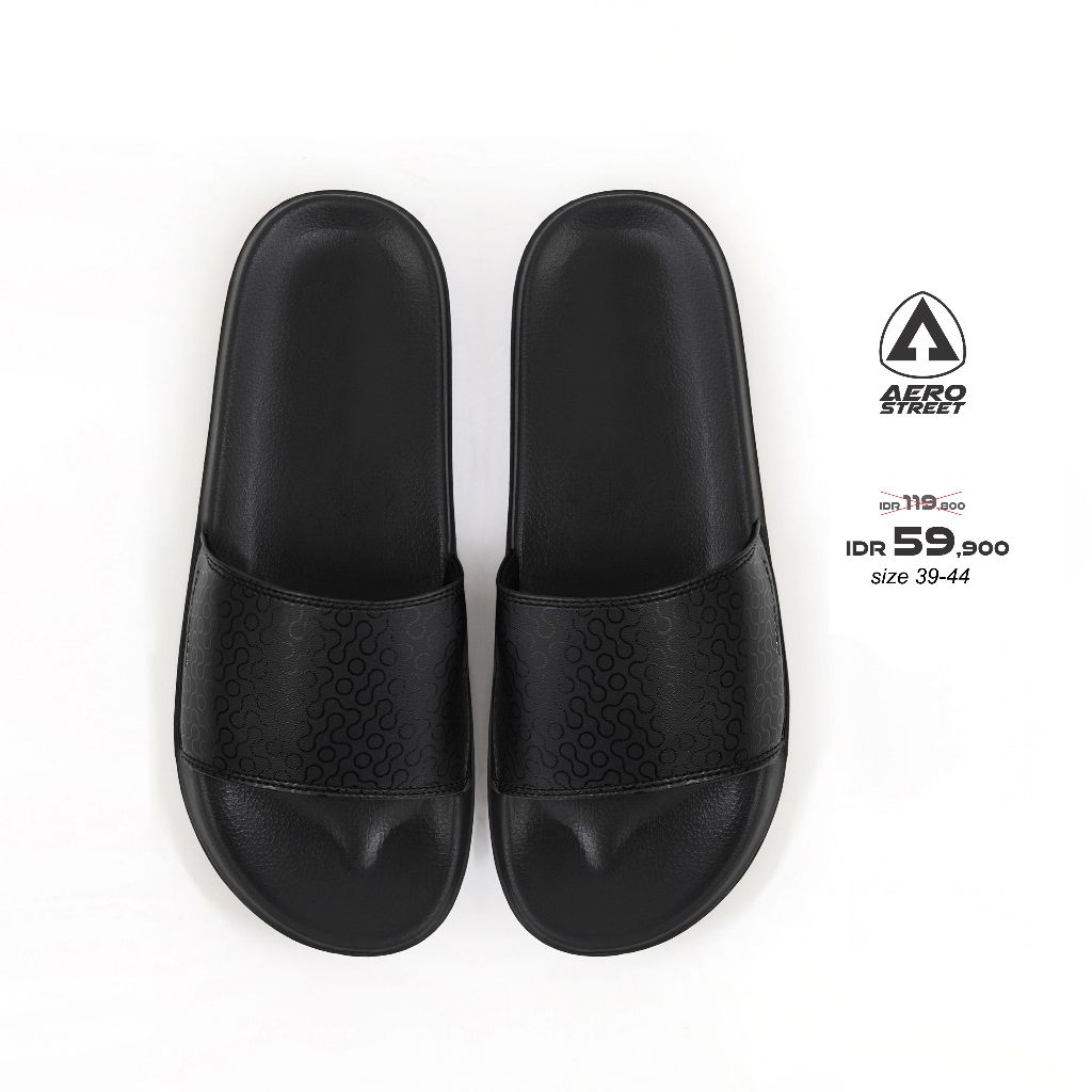 Aerostreet 39-44 Davion Hitam Hitam - Sandal Selop Pria Wanita BAAAA