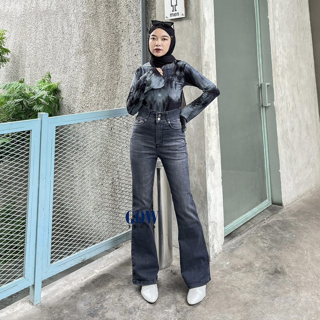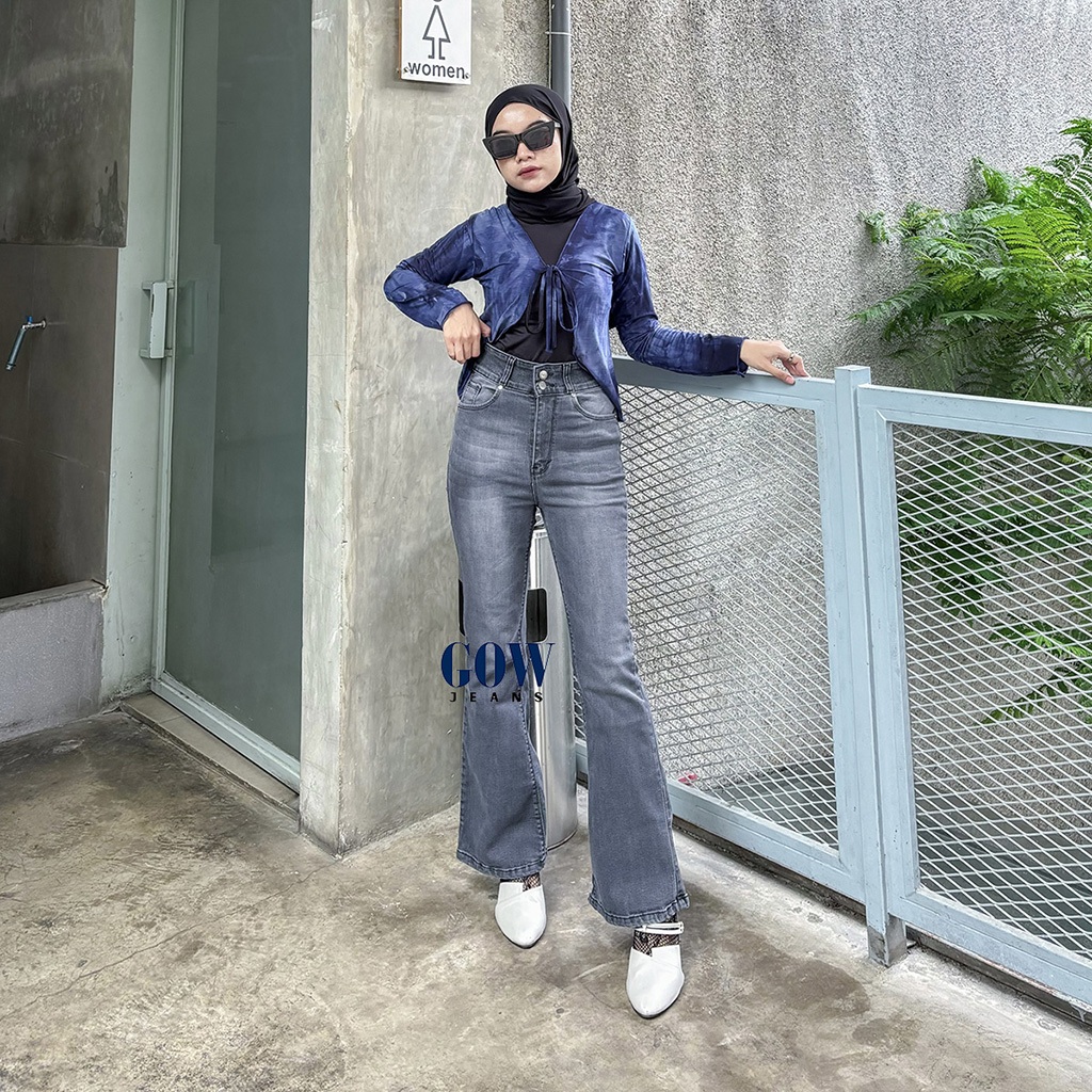 GOWJEANS - Ultra Highwaist Cutbray Jeans Strech Grey Wash Slim-fitting Double Buttons