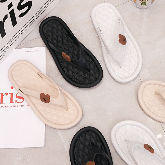 SANDAL JEPIT WANITA FLAT EMBOSS BEAR | SENDAL JAPIT CEWE DEWASA COCOK UNTUK SEMUA MOTIF UNIK