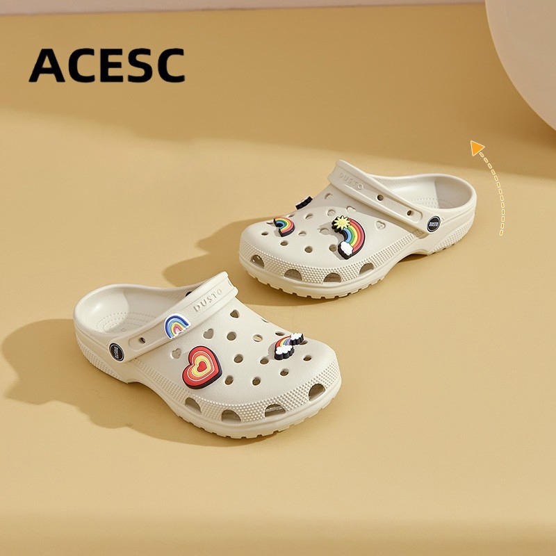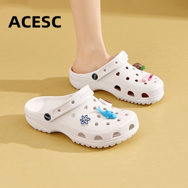 ACESC Sandal Wanita LILY Kasual Terbaru 2025 Sendal Selop Baim Karet Eva Jibbitz Lucu Kekinian