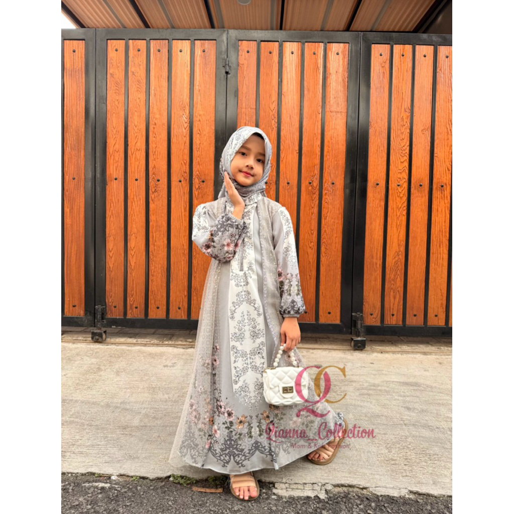Gamis Syafira Ceruty BabyDoll Motif Sultan Mix Tille Free Hijab Gamis Anak Perempuan Terbaru 2026 Gamis Lebaran 2026