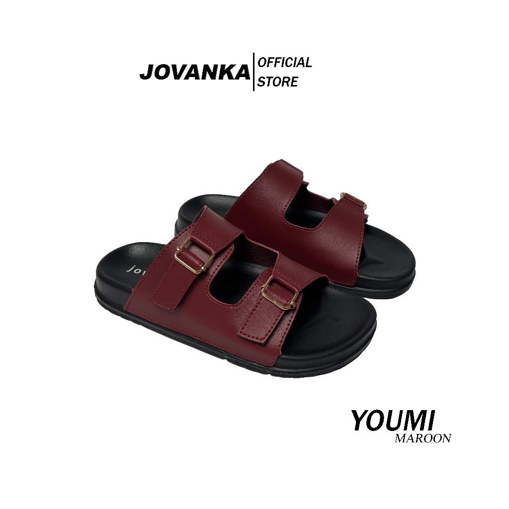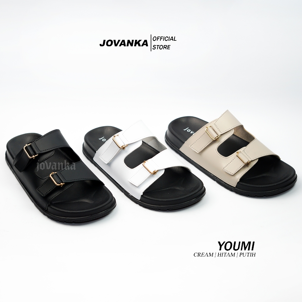 Jovanka Youmi - Sandal Wanita Platform Casual | Sendal Selop Wanita Model Kekinian Cantik Elegan - Gesper Gold Perekat Aktif Sandal Cewek Karet