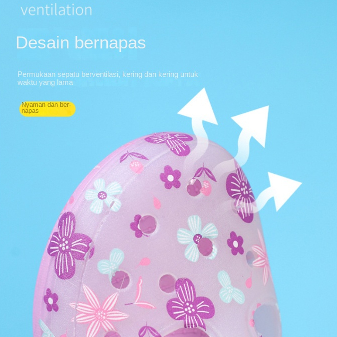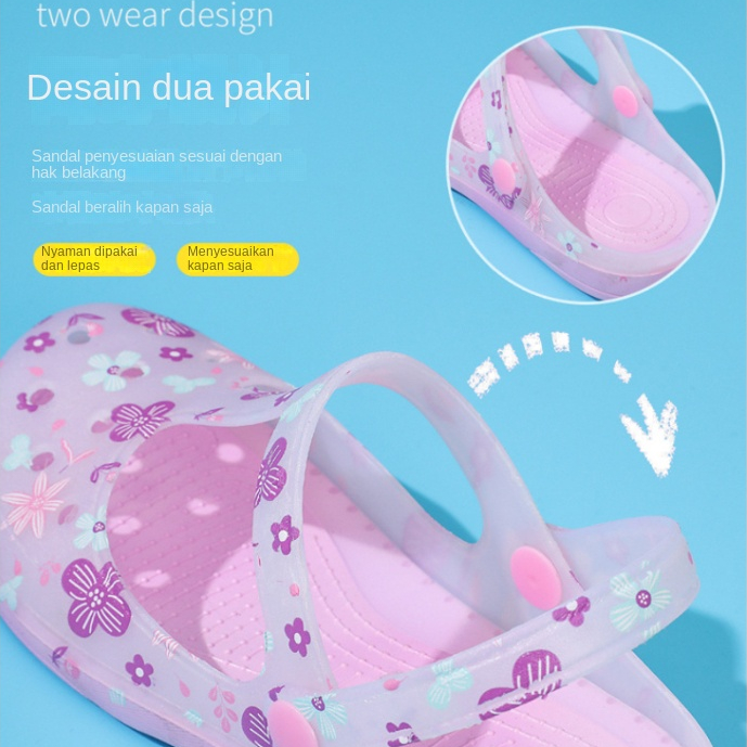 VEBLEN OFFICIAL Sandal Wanita Mules Clog Selop Wanita Cewek Perempuan Motif Bunga Bahan Jelly Bening Transparan