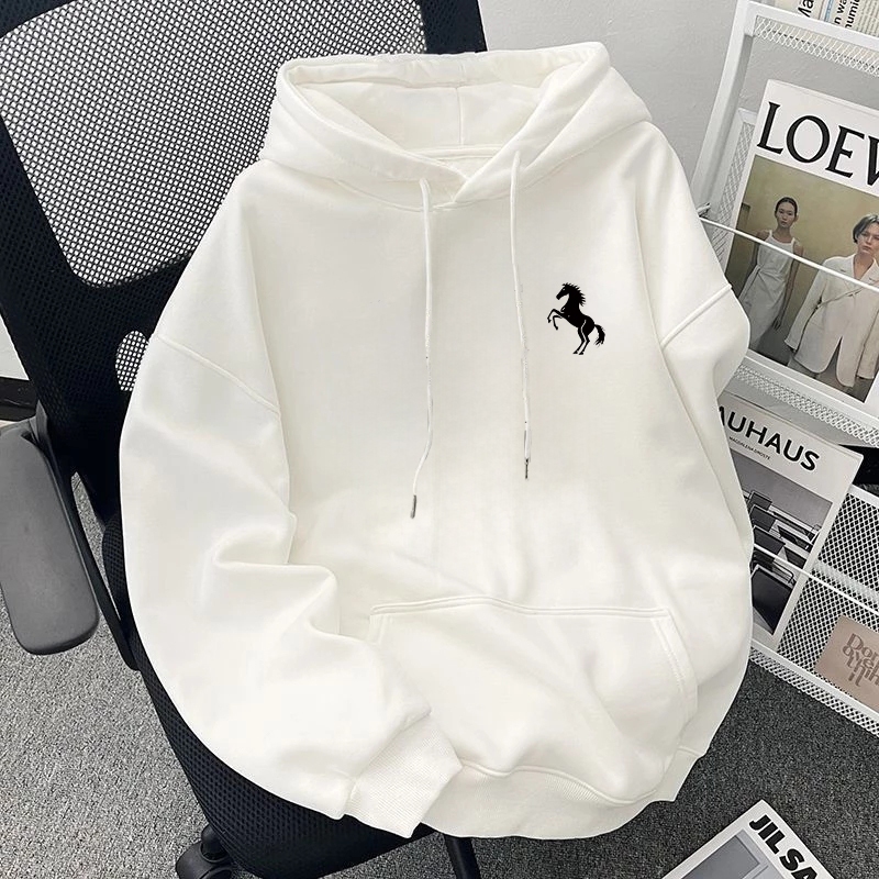 Disneay Hoodie Pria Boxy Putih Sweater Hoodie Tren Retro | Cetakan Simple Pony Logo Motif Kecil Keren Sweater Pria Jumbo | Hoodie Pria Original 100 PERSEN Bahan Tebal Keren