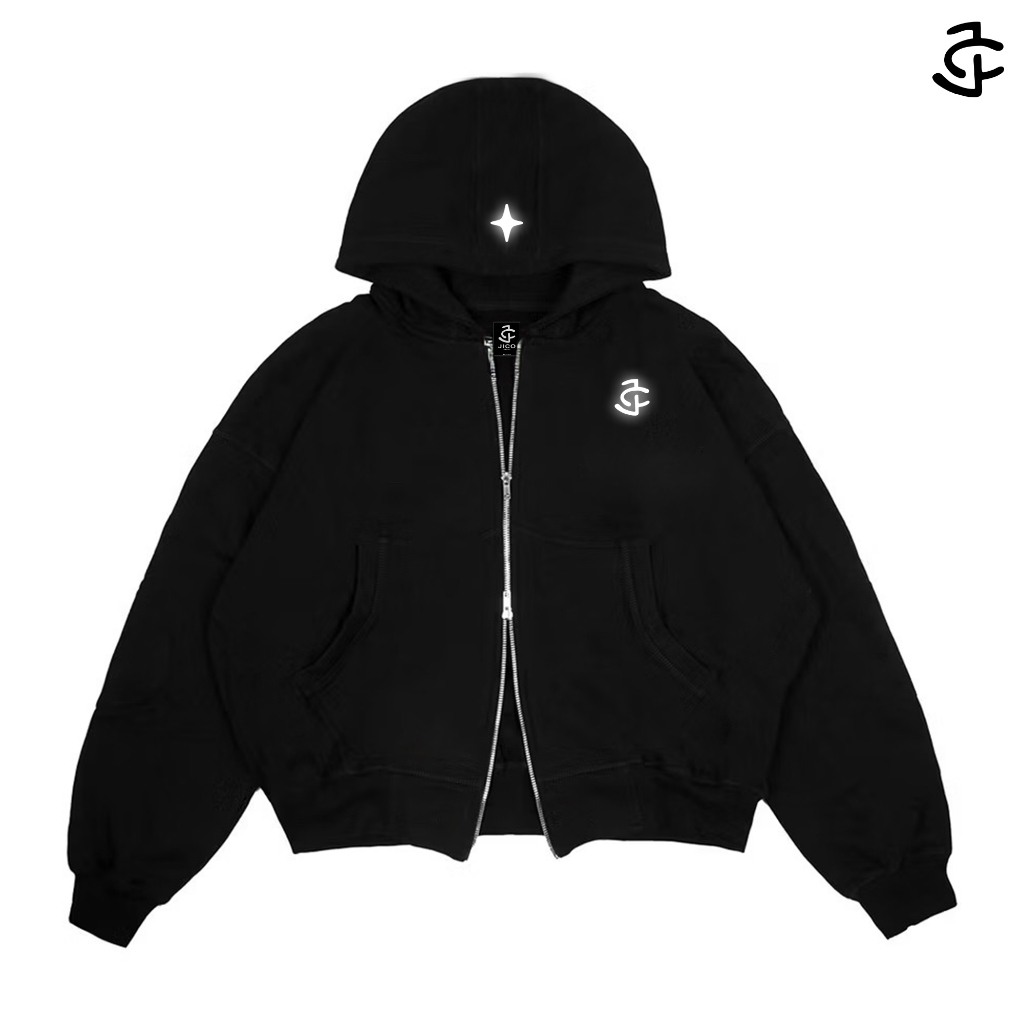 JICO - Sweater Hoodie Boxy Oversize Unisex DOUBLE ZIP Sablon Menyala LOGO JC