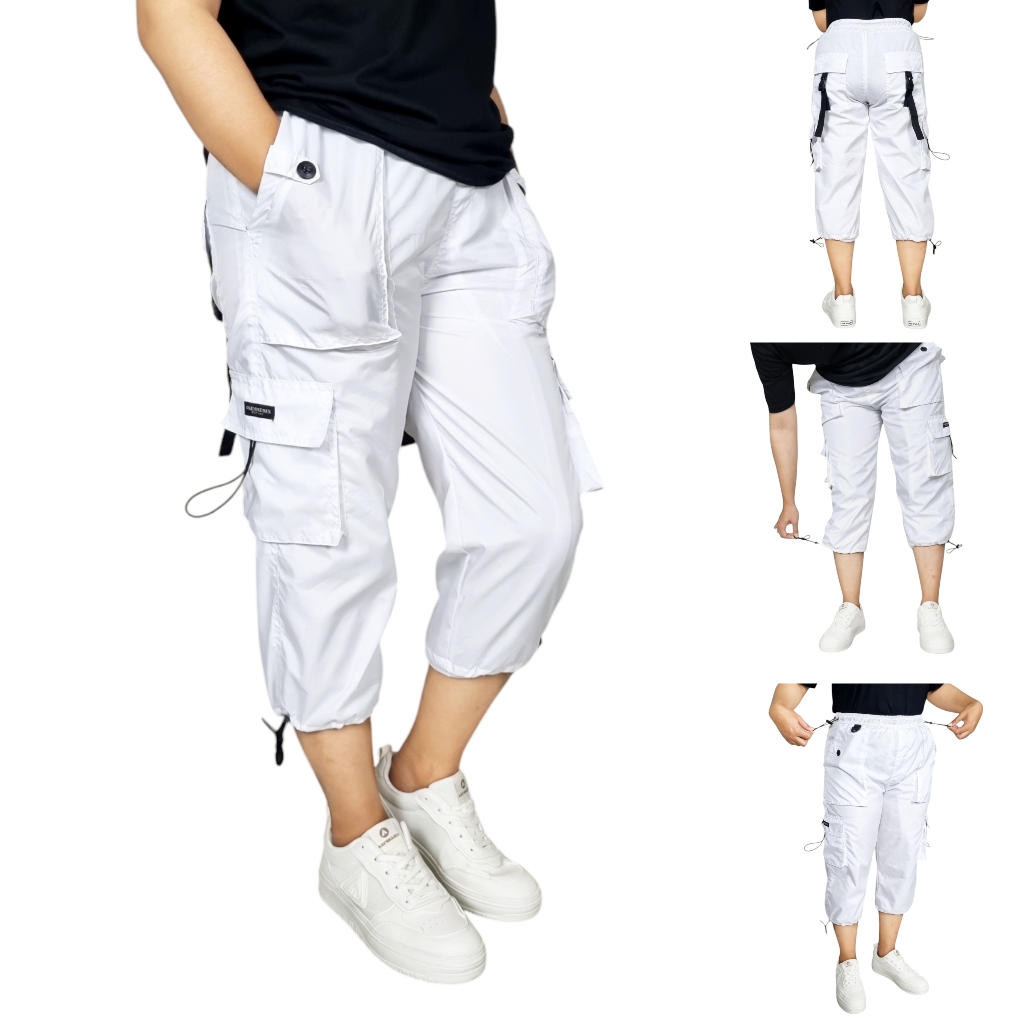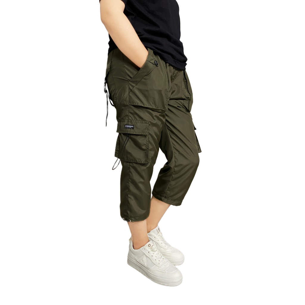 ONEONESIX Celana Cargo Parasut Wanita 7/8 Hijau Army Celana Jogging Olahraga Casual Sport
