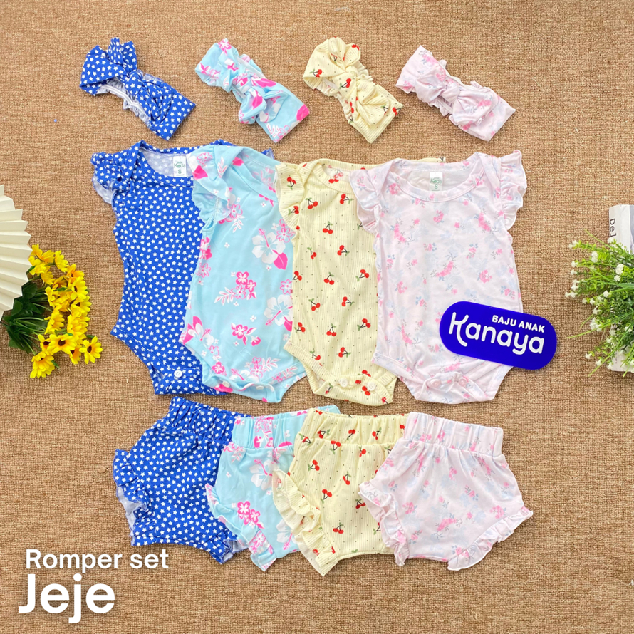3-15 BLN SETELAN BAYI JEJE ROMPER BAYI INCLUDE HEADBAND by LITTLE KODA (3 IN 1 SET) (SNI)
