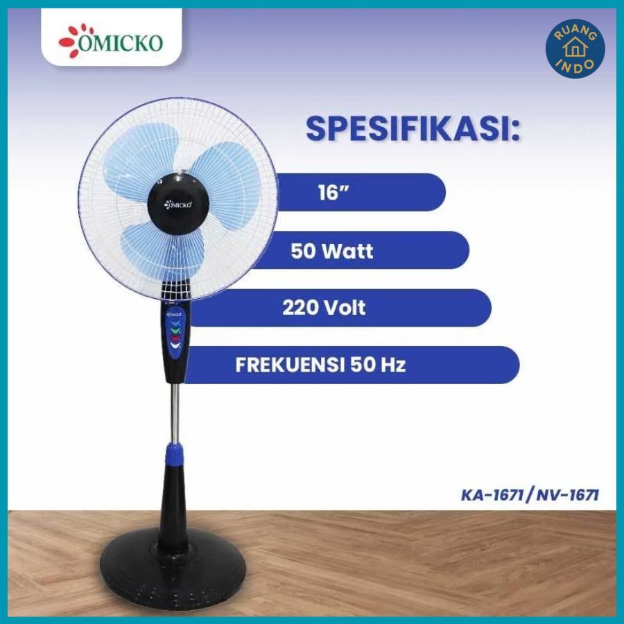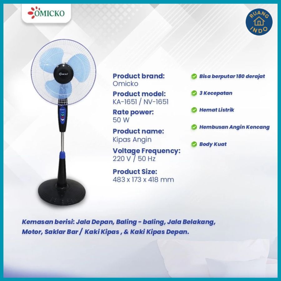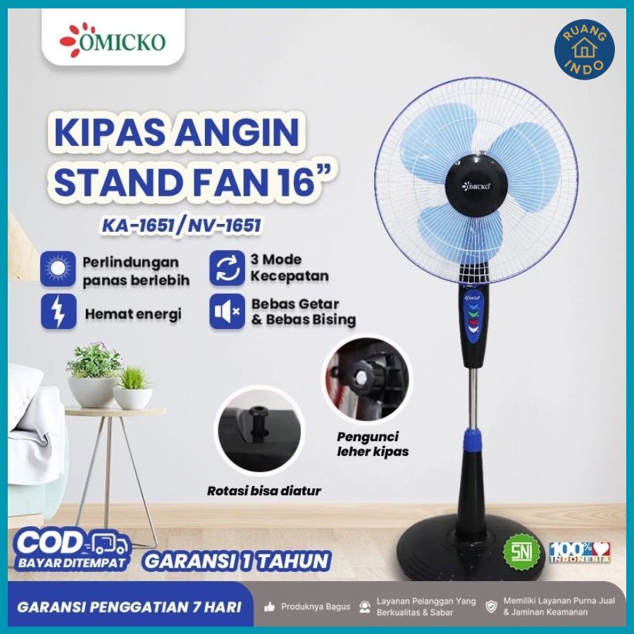 Kipas Angin Berdiri 16 Inch Omicko Angin Kencang | Stand Fan 3 Kecepatan Hemat Energi Bebas Bising
