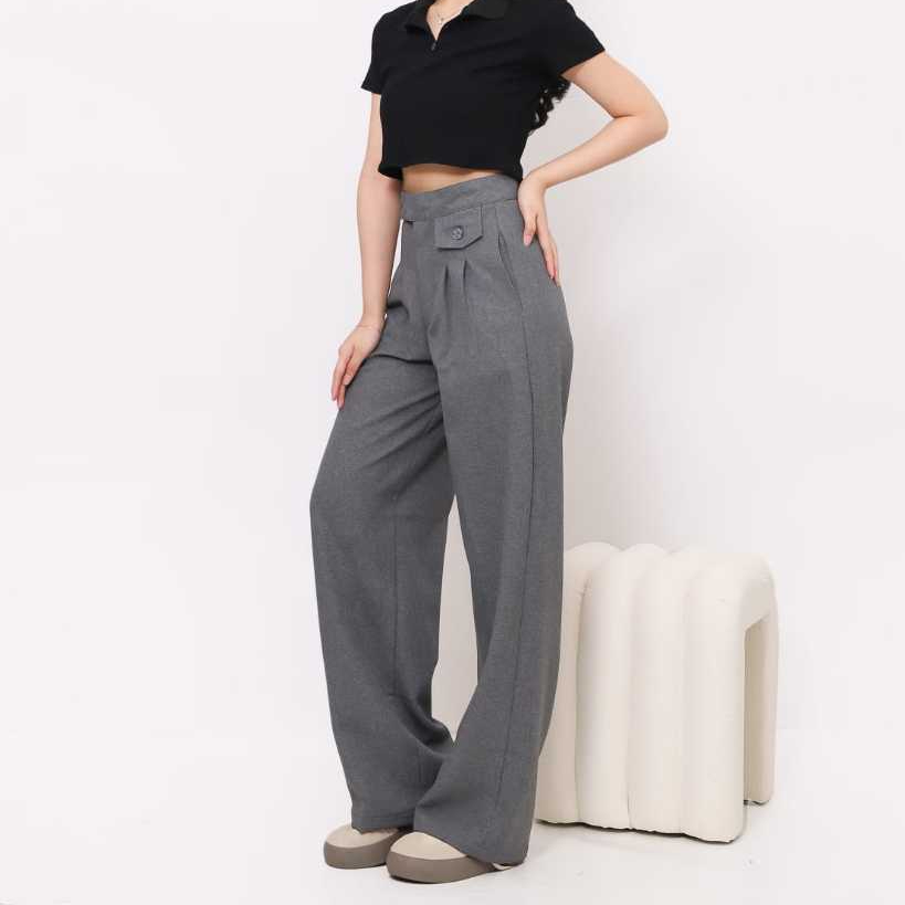 AMARAVE - Oro Pants Celana Panjang Wanita Celana LoosePants Highwaist Celana Bahan Trousers Formal Kerja Kekinian