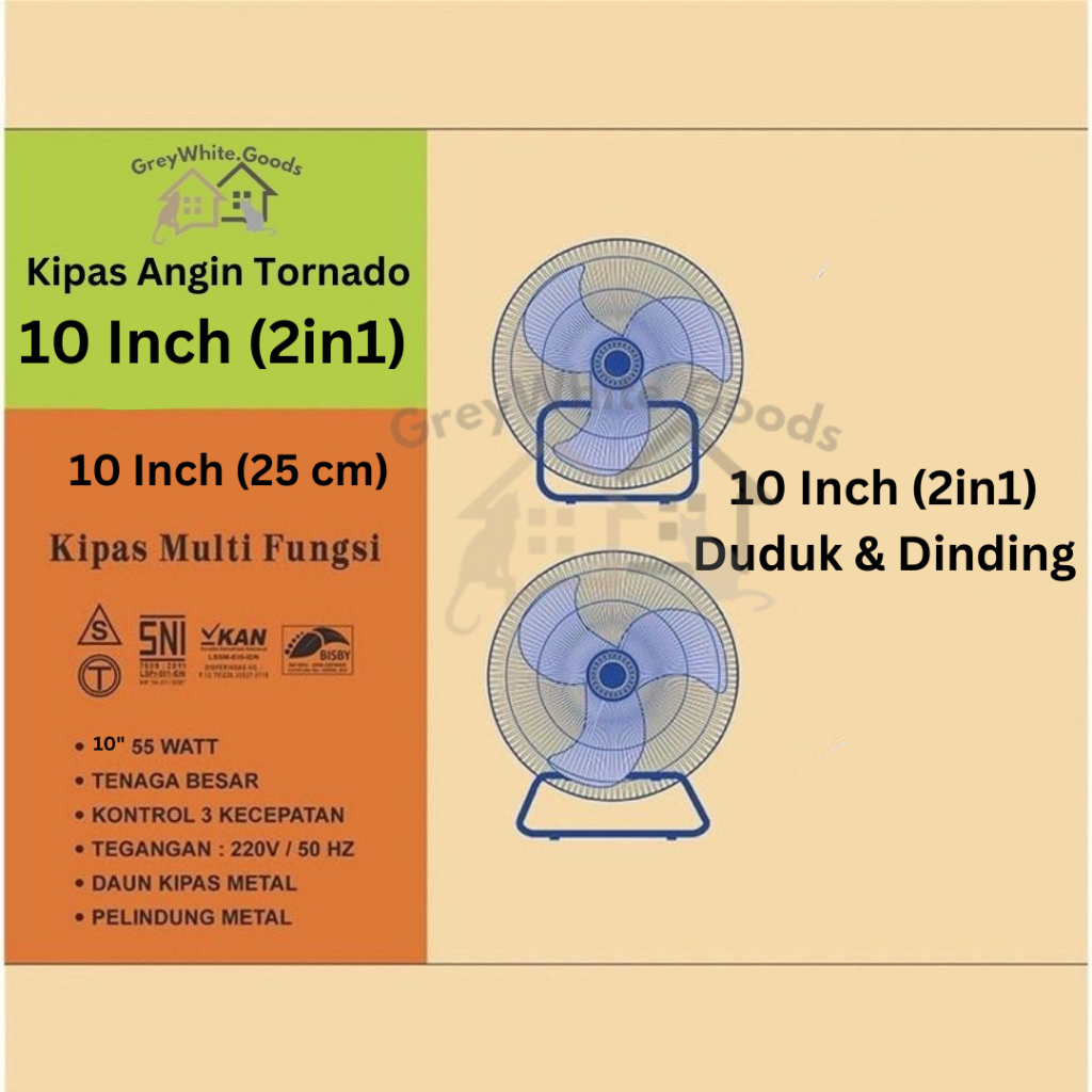 Kipas Angin Besi 2in1 Garansi Duduk Dinding Tornado 10 Inch Hemat Daya Angin Kencang