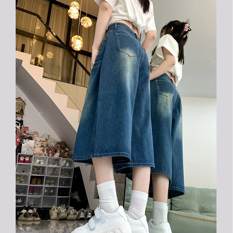 S-6XL Celana Pendek Denim Selutut Untuk Wanita Celana Denim Berpotongan Lebar Pinggang Tinggi Bergaya Vintage