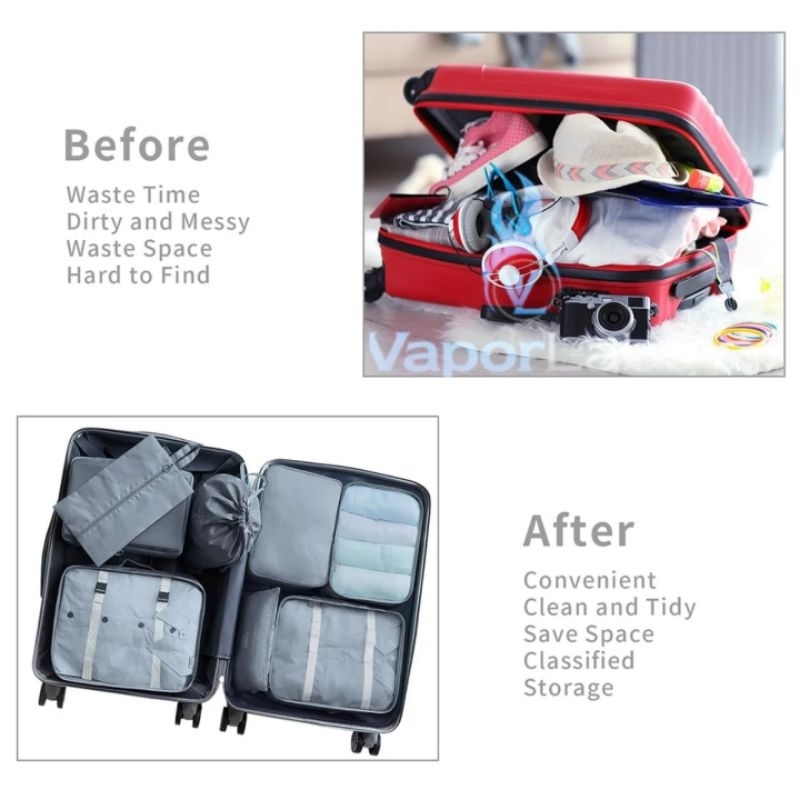 7PC 7 In 1 Travel Pouch Luggage Organizer Tas Pakaian Koper Storage Bag In Bag