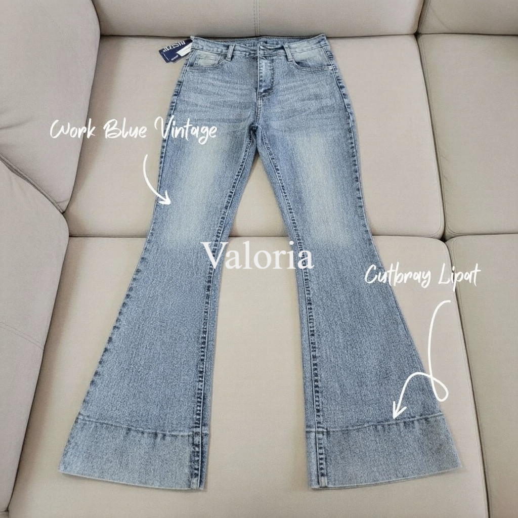 Celana Cutbray Jeans Janita Higwaist Lipat Kaki Besar Jeans Strech Wanita Bawah Lebar Kekinian