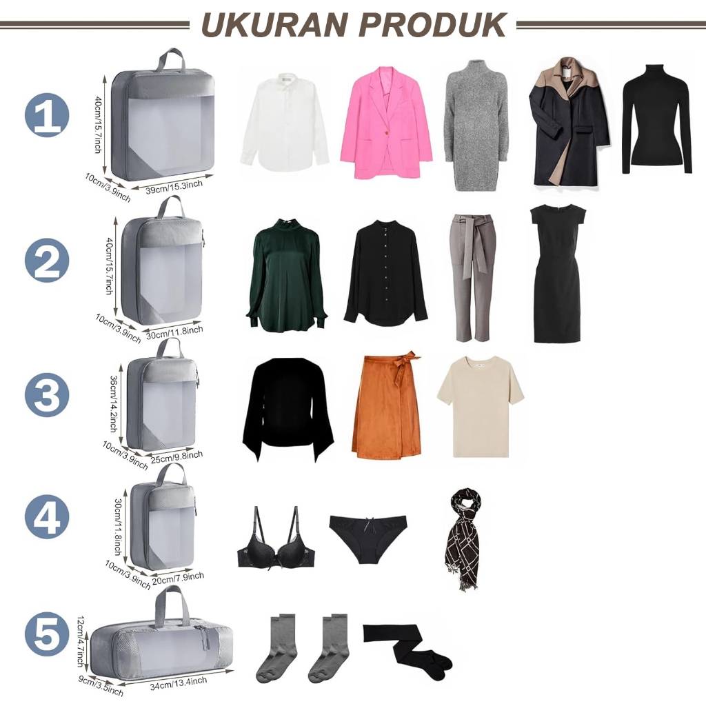 5 in 1 Tas Travel Compression Packing Cubes Secret Pouch Set Luggage Organizer Tas Koper Expandable Storage Bag Tas Peny