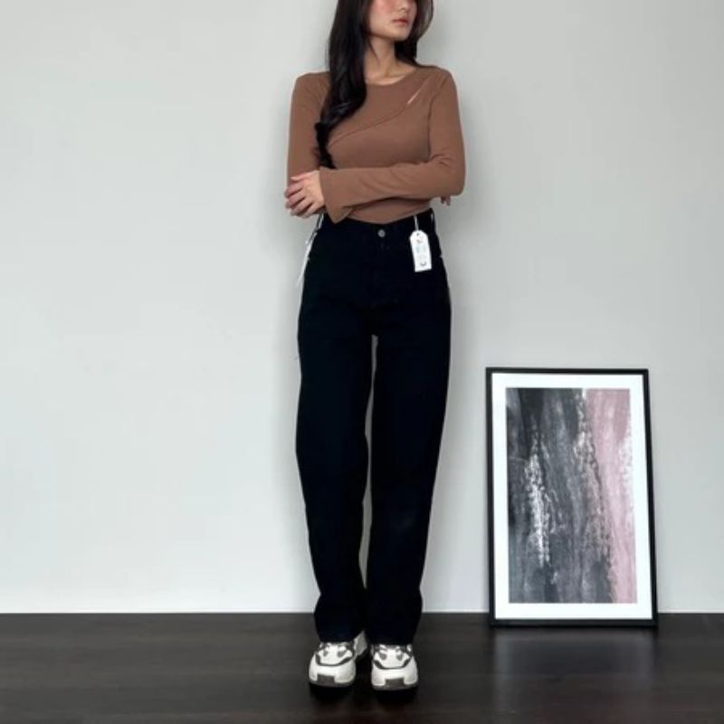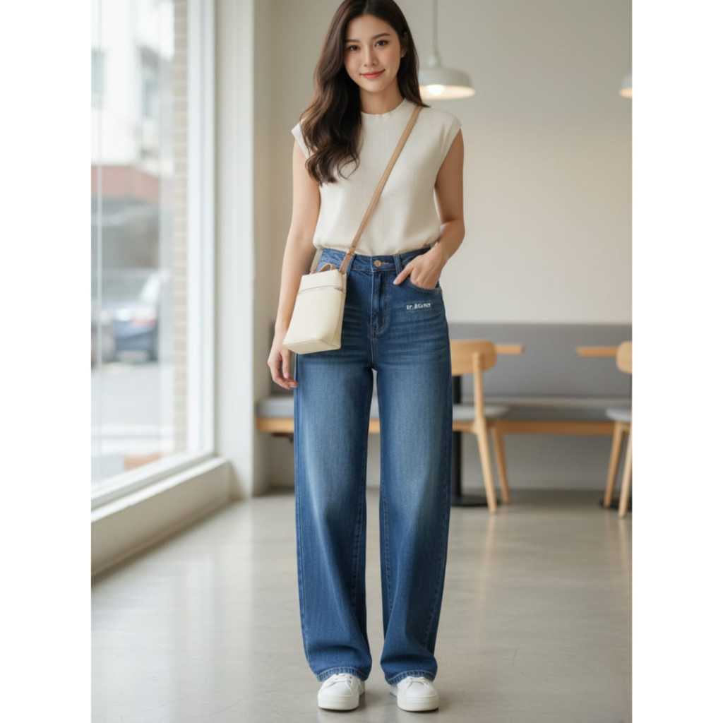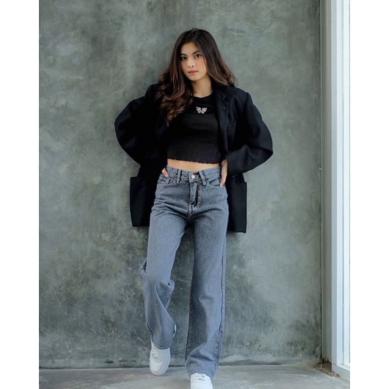 Hansfcty Dax Jeans - Celana Jeans Wanita Highwaist Straight Cut Import Panjang Korea Loose Premium Quality Highwaist Kulot Loose Jeans Wanita Kekinian