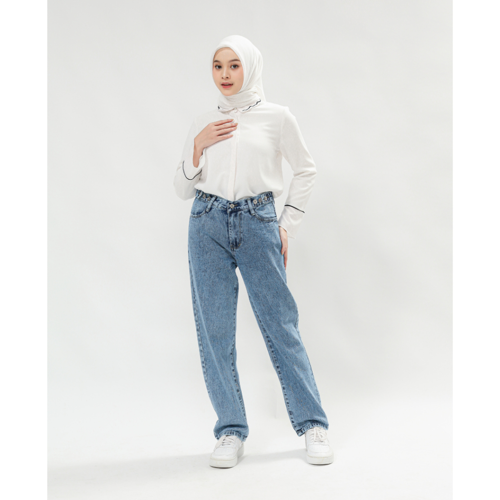 Celana High waist Jeans Wanita Pinggang yang dapat di sesuaikan