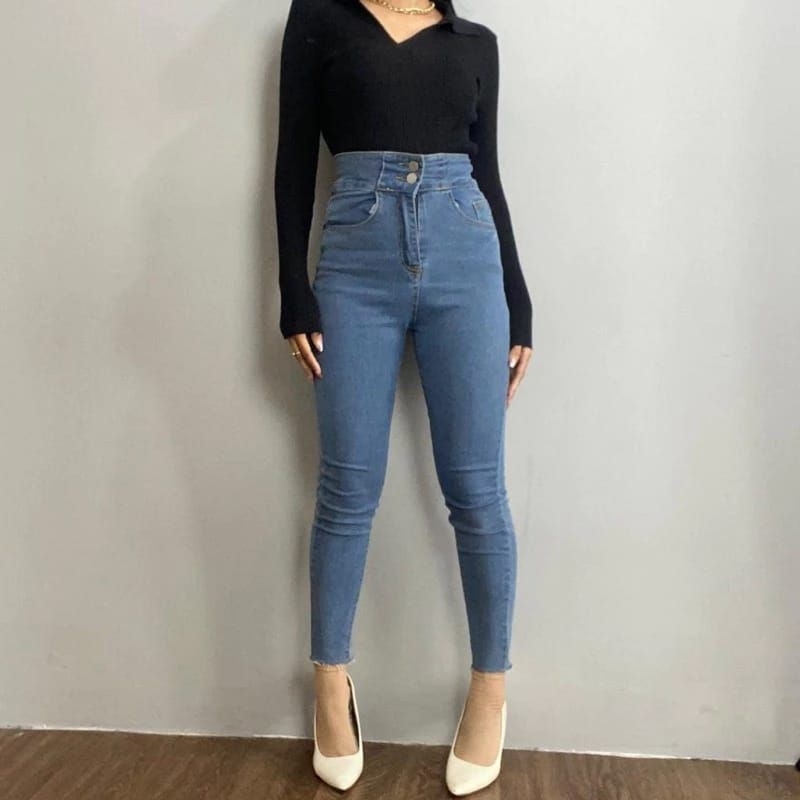 Drex_fa21 - Celana Jeans Pensil Wanita Hightwaist J32 Celana Jeans Skinny Stretch Melar Wanita Terbaru Pinggang ( X )