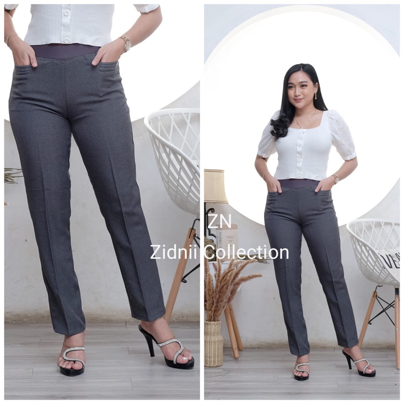 Celana kerja karet pinggang wanita JUMBO kualitas premium bisa MELAR HIGHWAISH