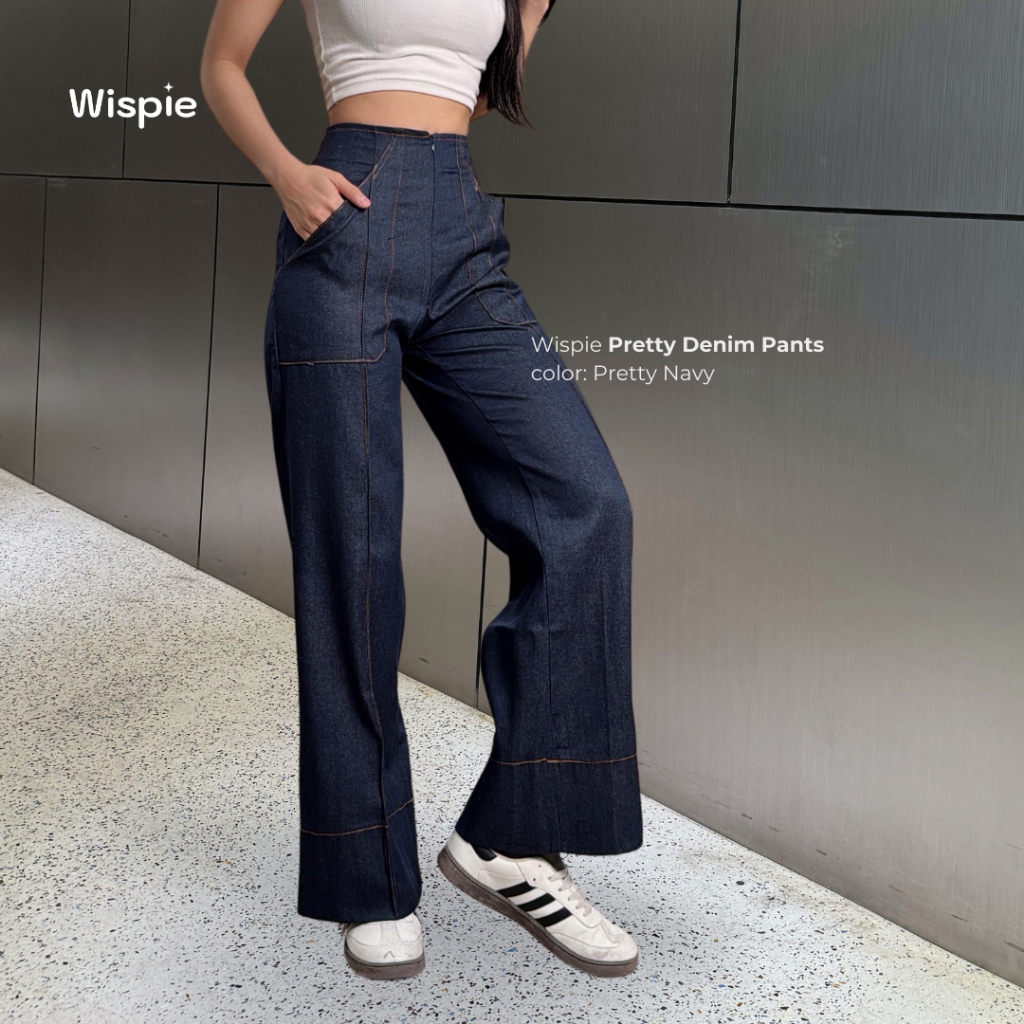 Wispie Pretty Denim Pants | Celana Denim Wanita High Waist Loose Straight fit