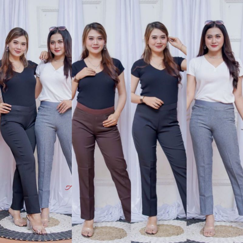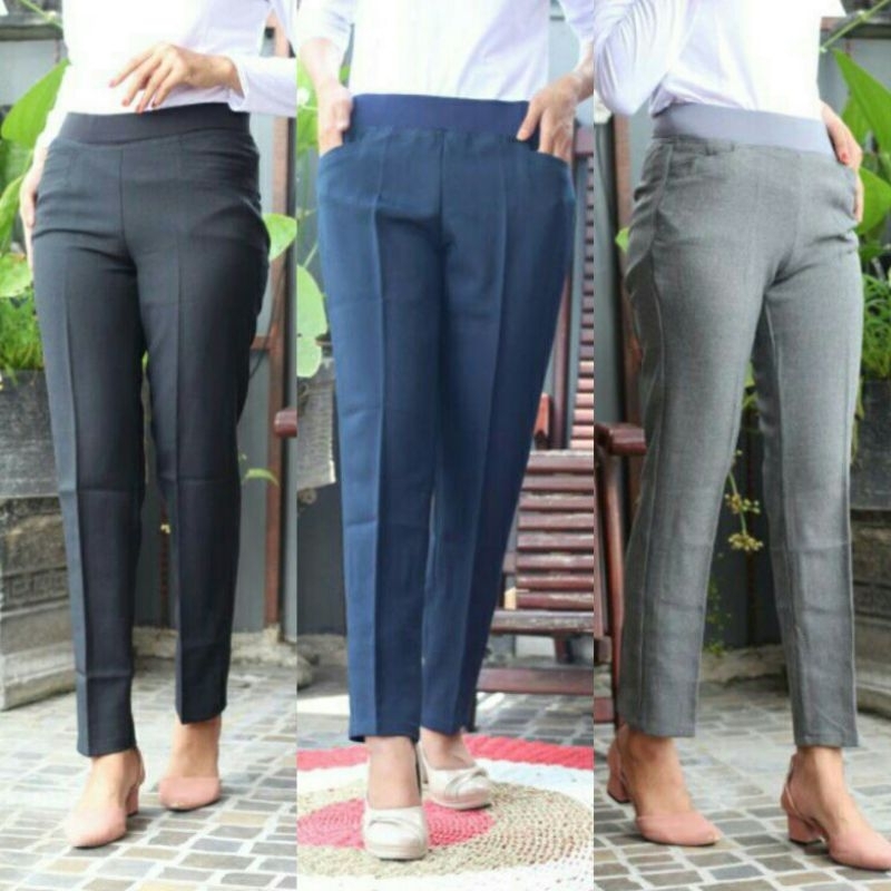 CELANA KERJA WANITA PINGGANG KARET PREMIUM CELANA PANJANG WANITA MURAH BANGET