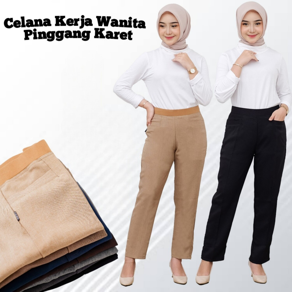 Celana Kerja Wanita Kantor Pinggang Karet SemiWoll