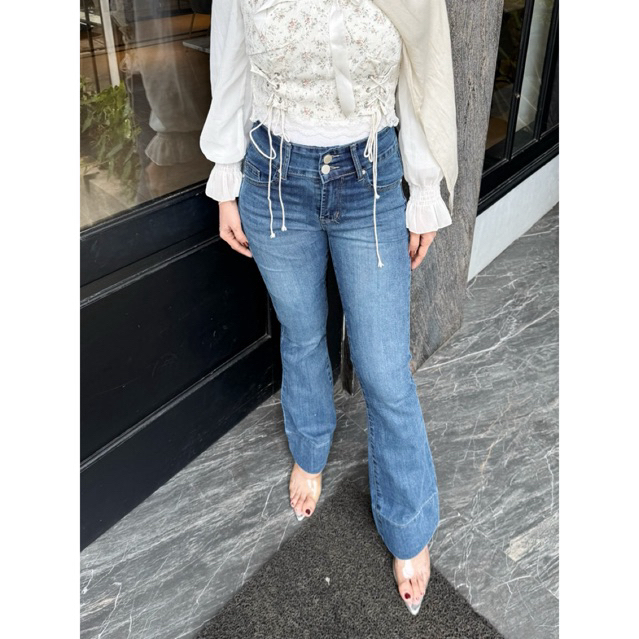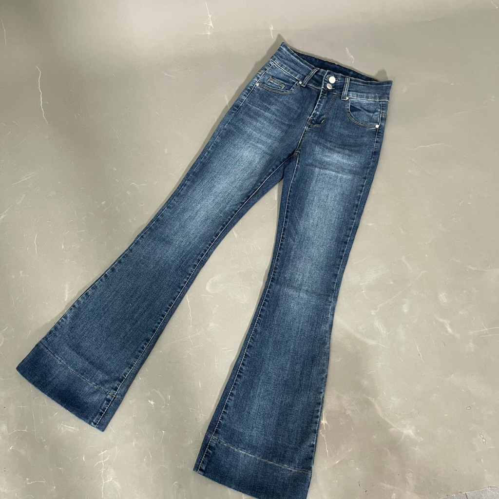 HAZEE - Maxy | Celana Jeans Wanita Highwaist Cutbray Panjang Bahan Melar HW Kancing 2 Ready Stok