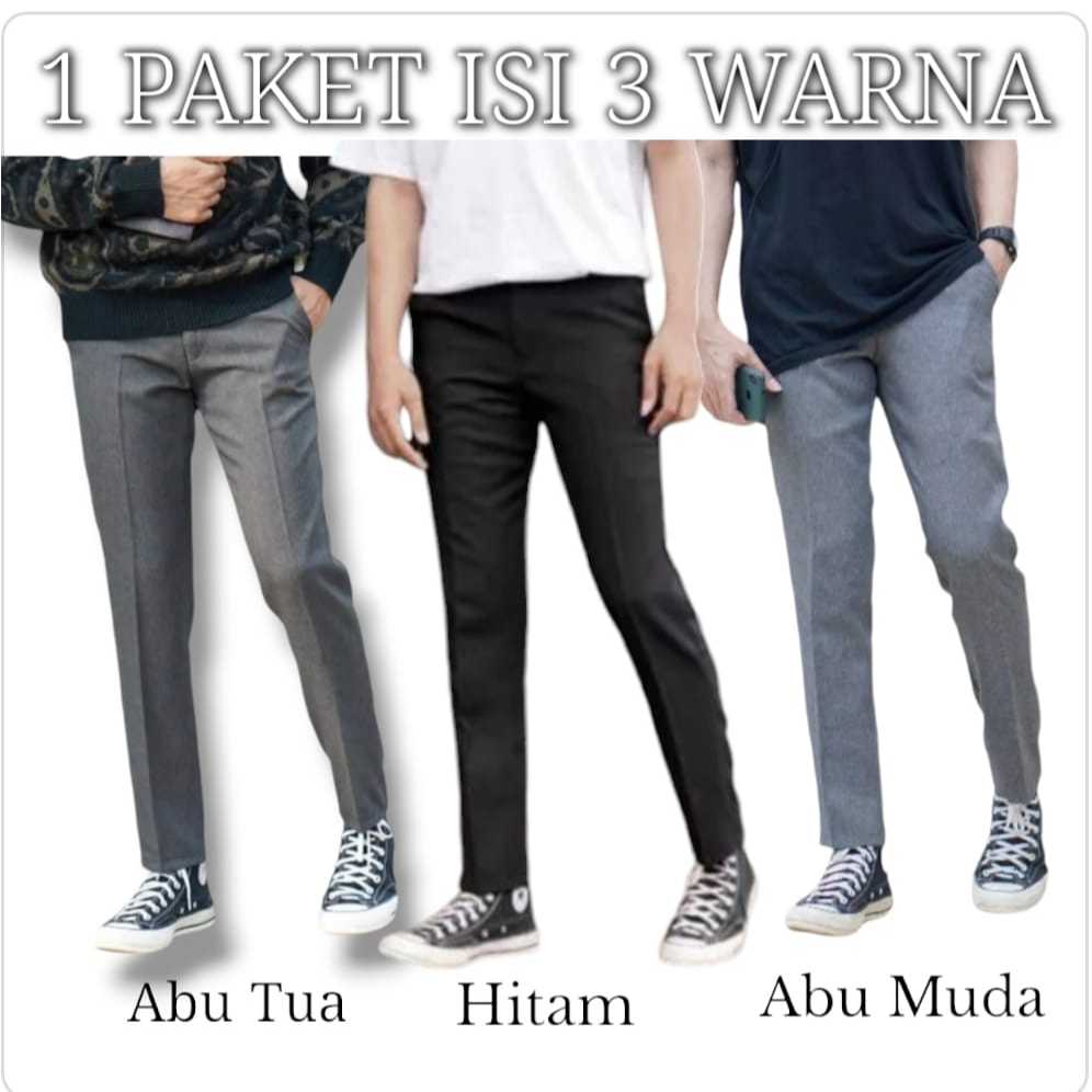 PAKET HEMAT 100 DAPAT 3 CELANA KANTOR FORMAL PRIA SLIMFIT BAHAN DASAR KAIN WOLL KUALITAS