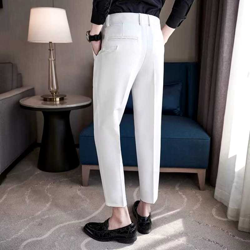 CELANA KANTOR FORMAL PRIA SLIMFIT BAHAN DASAR KAIN WOLL HITAM NAVY ABU PANJANG