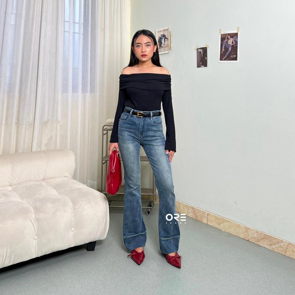 ORE - Jennie Cutbray Jeans Highwaist Lipatan Kaki Besar Jeans Strecht