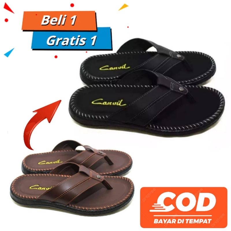 PROMO BELI 1 PASANG GRATIS 1 PASANG BUY1 GET1 SANDAL PRIA FREE BOX SANDAL KULIT KARET VIRAL SANDAL KASUAL PRIA FORMAL