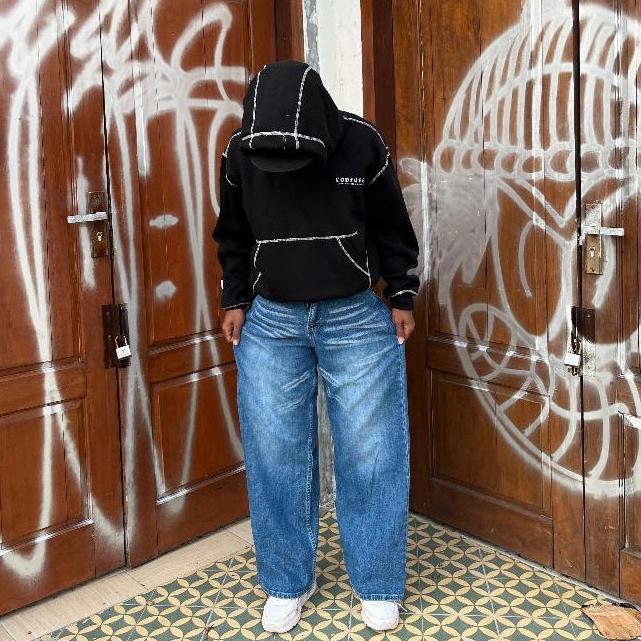 (UNISEX) Celana Jeans Wide Leg Wisker Lebar Gombrong Denim Panjang Nyaman