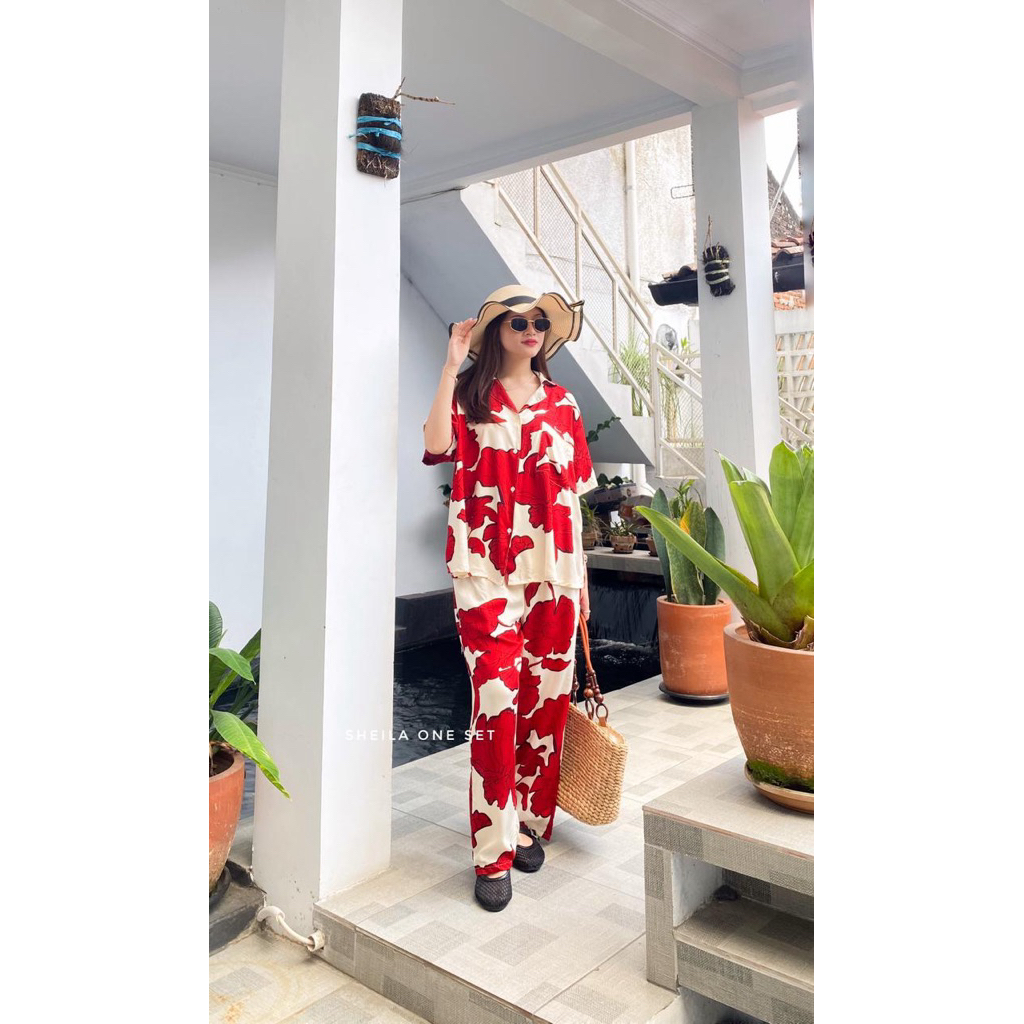 ONE SET SHEILA / pakaian baju tidur busui / SETCEL/ / BEST SELLER /kemeja rayon / pajamas rayon/ setelan busui /